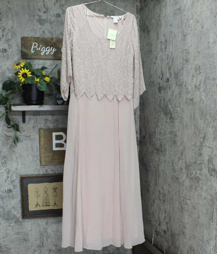 J Kara Womens Geometrical Beading 3/4 Sleeve Mock Flare Dress Blush Multi Pink 6