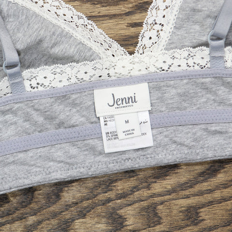 Jenni Womens On Repeat Wide Lace Bralette 100120858 Sleep Gray Heather M
