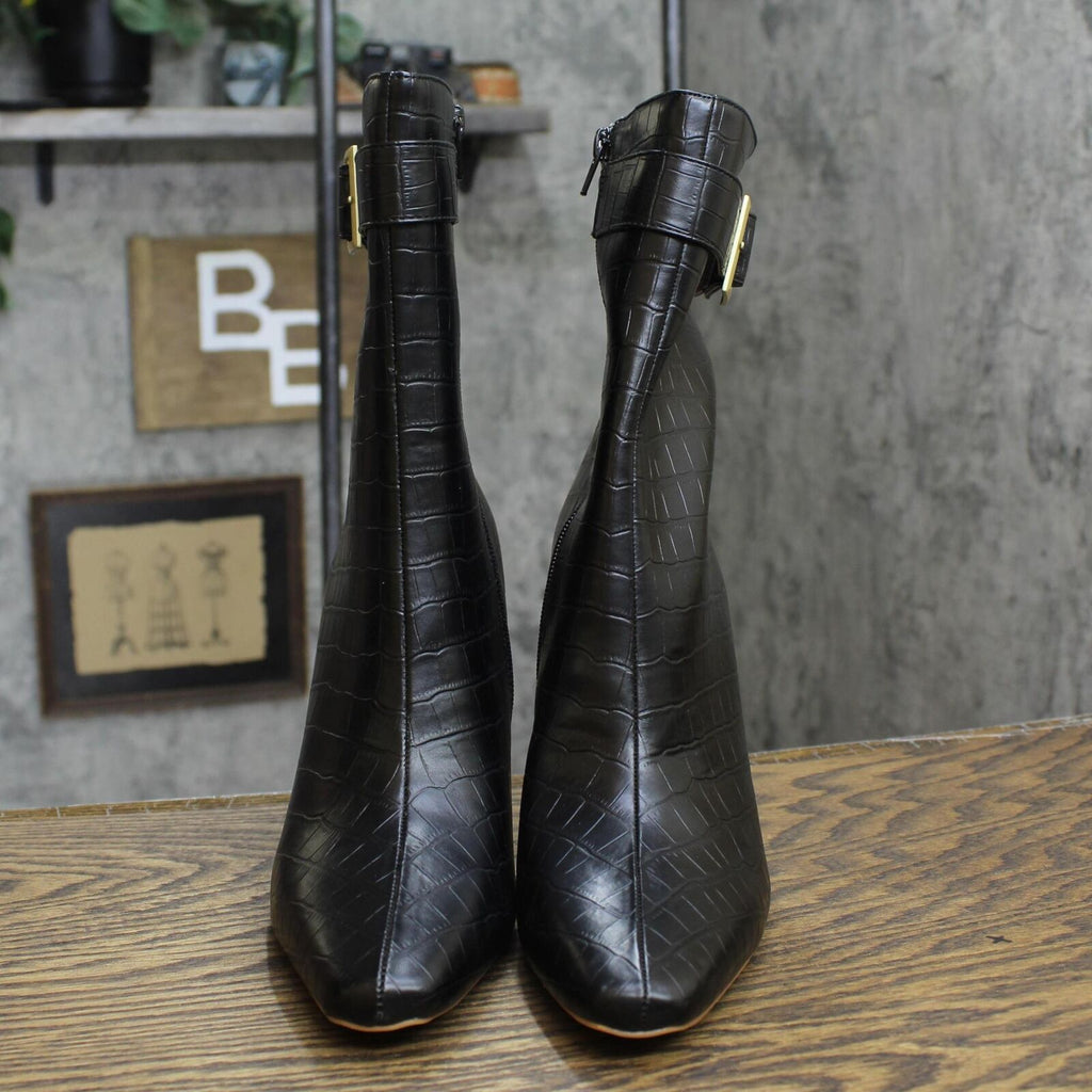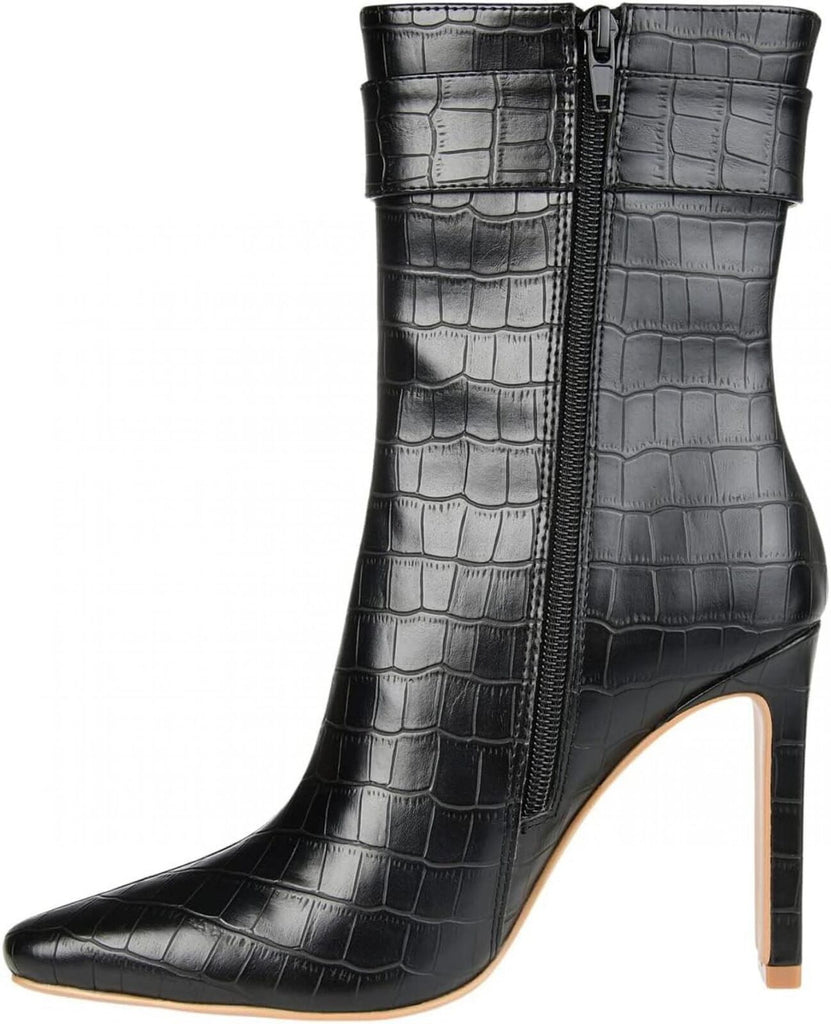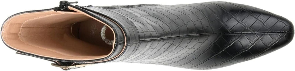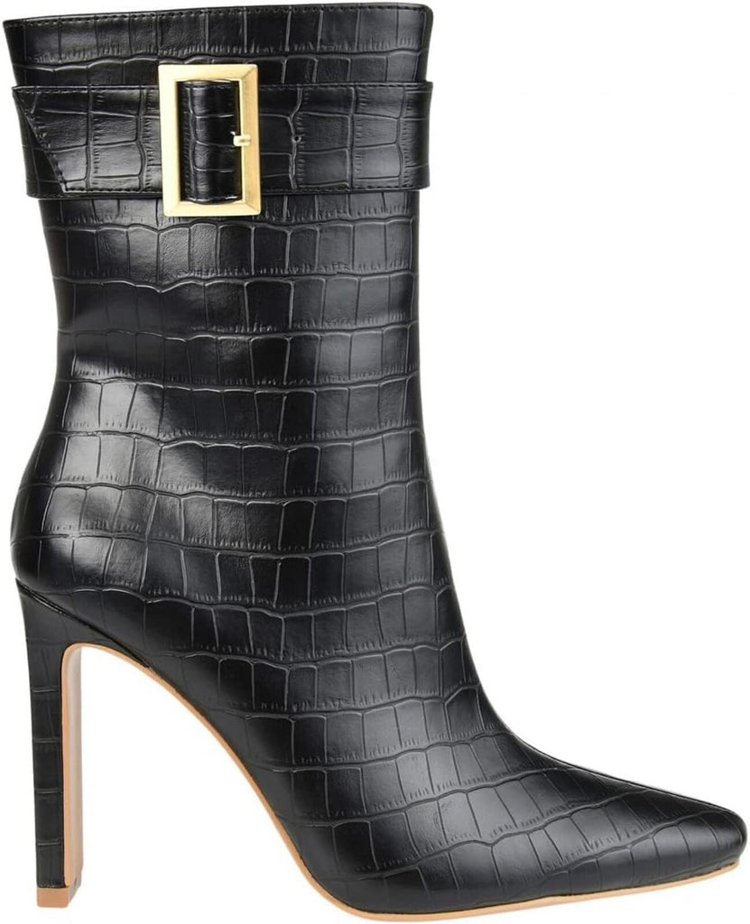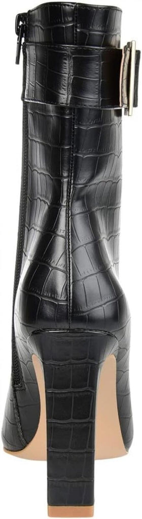 The Journee Collection(r) Tru Comfort Foam(tm) Elanie Booties elevate your look without letting you compromise on comfort. Croc textured Vegan leather upper with square buckle detailing. Fabric lining