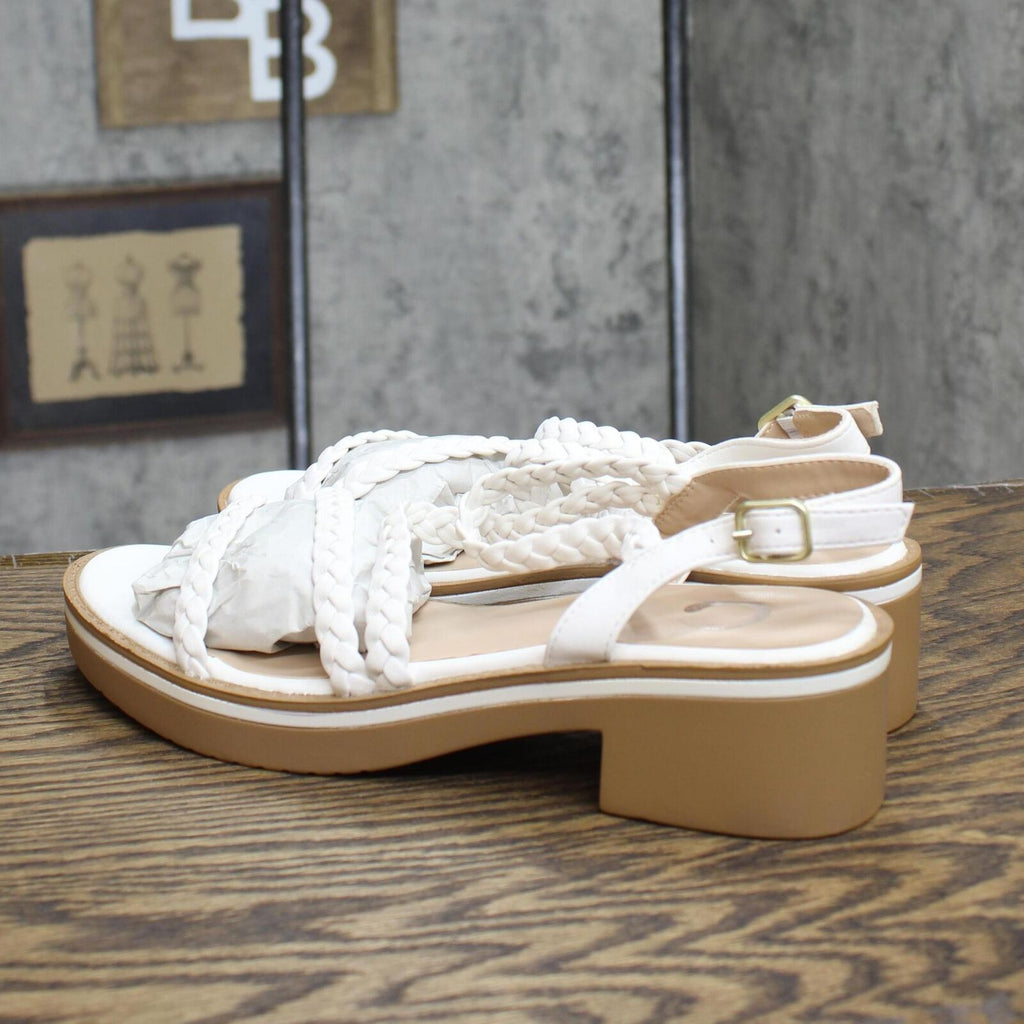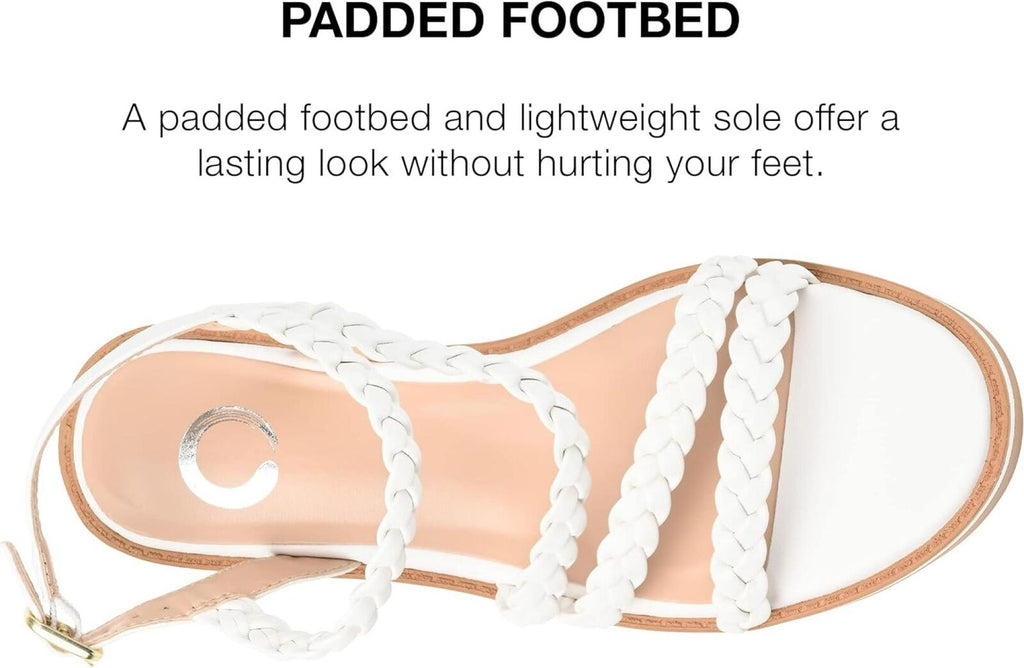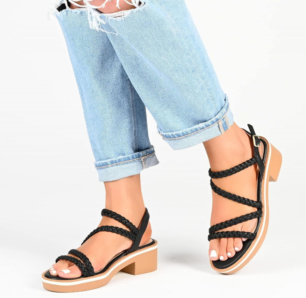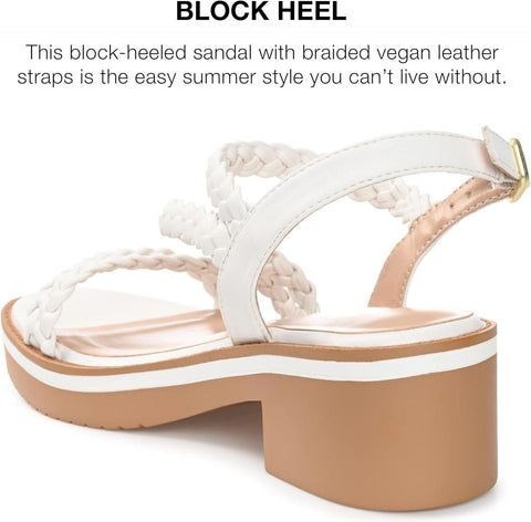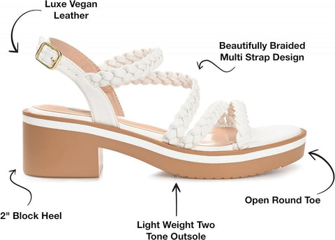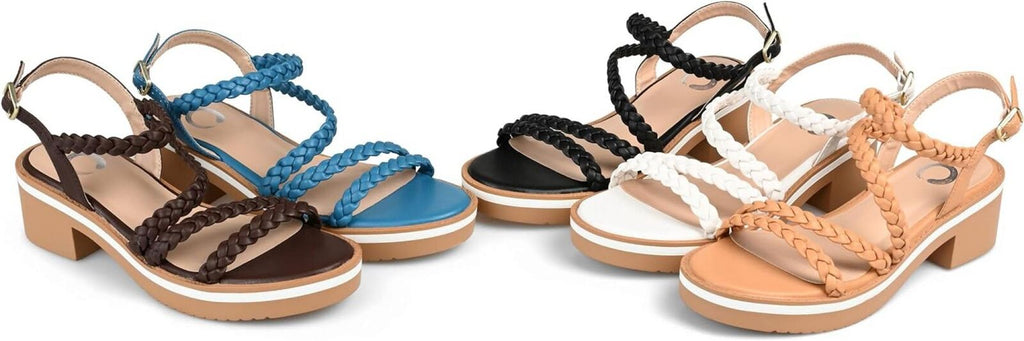 A light, breezy look for summer, the Taralie by Journee Collection. This charming multi-strap sandal features premium vegan leather fastened by a buckle at the ankle. A lightweight block heel and padded insole support this breezy design.