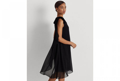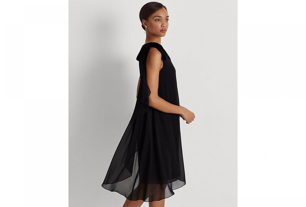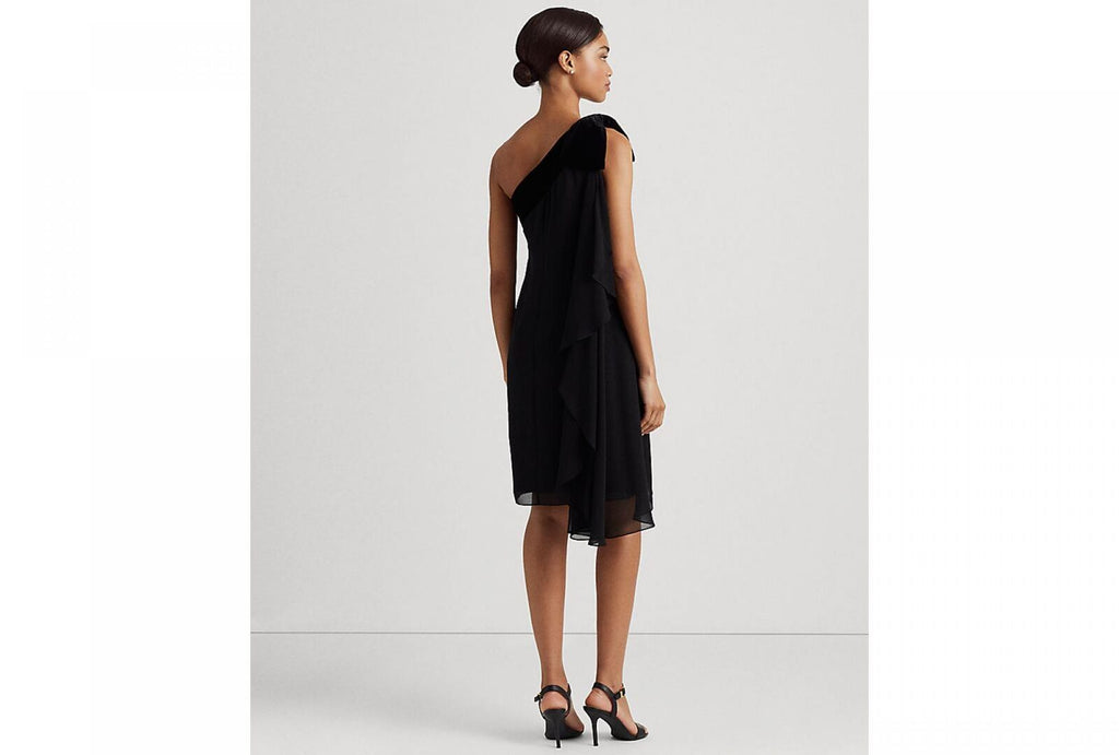 This modern one-shoulder dress pairs airy georgette with plush velvet. It features charming details like a feminine bow at the shoulder and a sweeping georgette drape. 94% Polyester, 6% Elastane. Imported. Hook and Eye closure. Dry Clean Only. This modern one-shoulder dress pairs airy georgette with plush velvet. It features charming details like a feminine bow at the shoulder and a sweeping georgette drape. Slim fit. Intended to hit at the knee. Size 8 has a 34" body length. Dress length is taken from the center back of the neck and changes ¼" between sizes. One-shoulder silhouette. Concealed side-seam zipper with a hook-and-eye closure. Velvet neckband with bow at the right shoulder. Cascading ruffle trim down the right side. Bust darts. Fully lined. Shell and lining: polyester. Neckband and bow: polyester, elastane. Dry clean. Imported. SHELL: 100% POLYESTER (RECYCLED) ,NECK BAND: 92% POLYESTER 8% ELASTANE ,BOW: 92% POLYESTER 8% ELASTANE ,LINING: 88% POLYESTER (RECYCLED) 12% ELASTANE. Vietnam