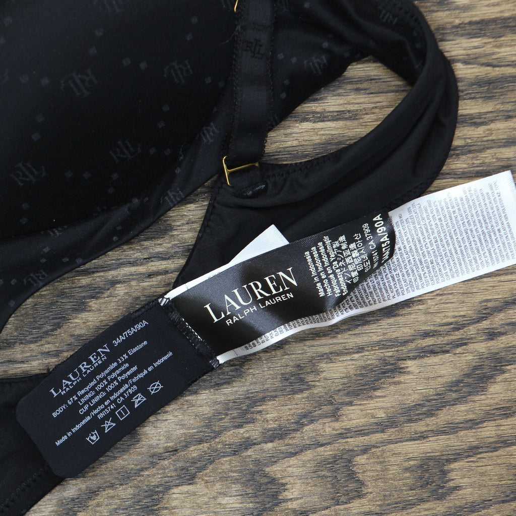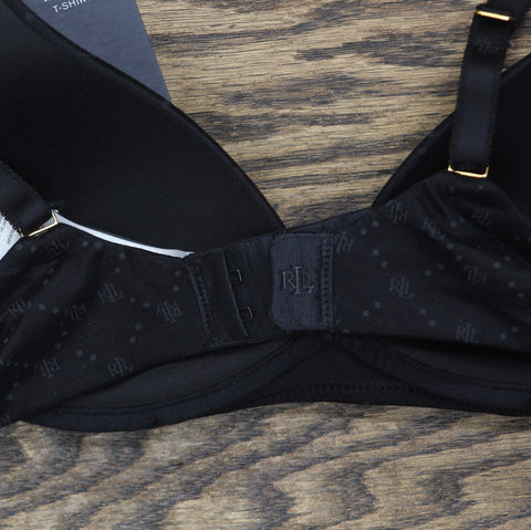 Lauren Ralph Lauren Womens Logo Wirefree T-Shirt Bra 4L0069 Black 34A