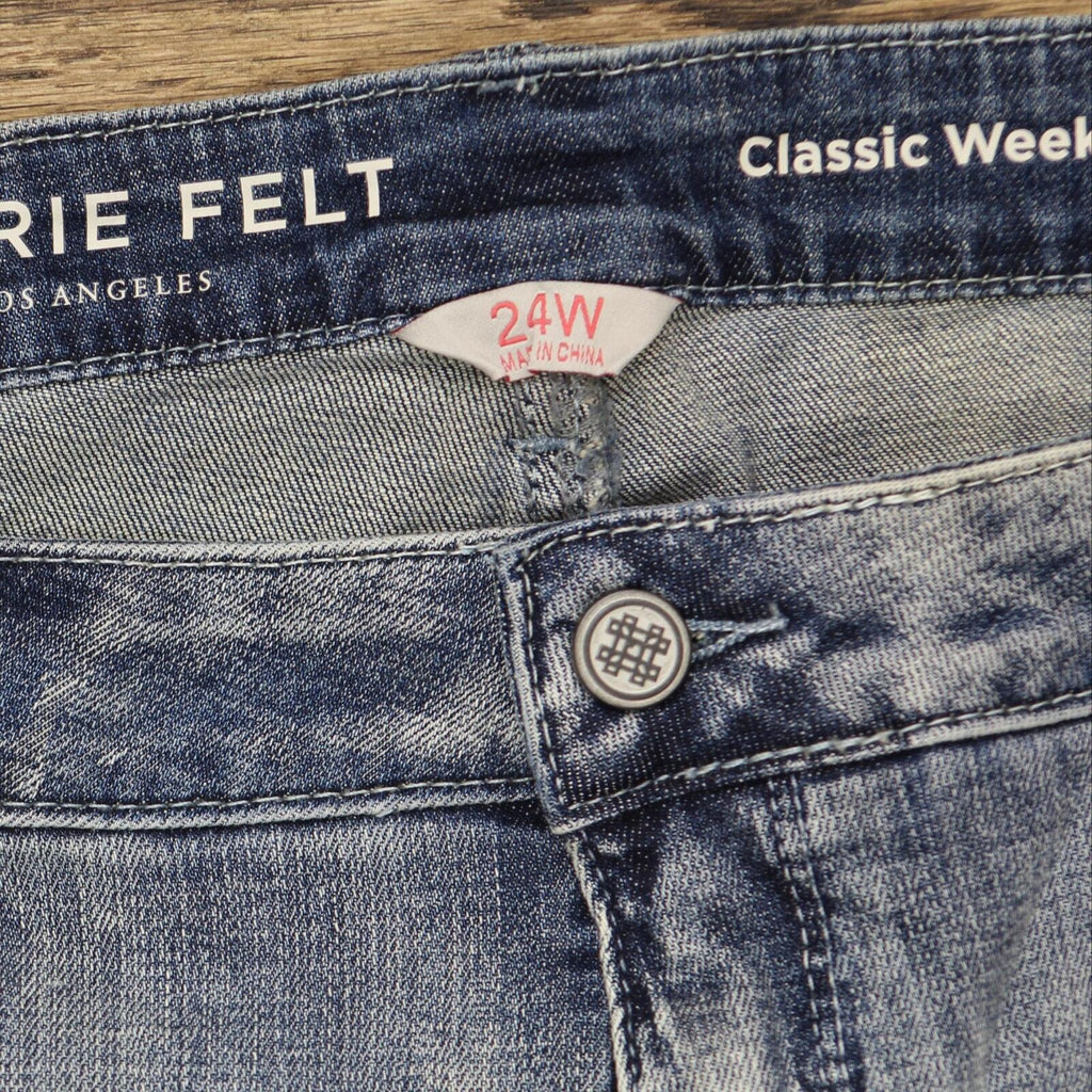Laurie Felt Classic Weekender Distressed Straight Leg Jeans Vintage Blue 24W