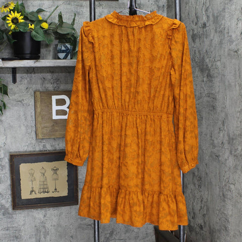 LC Lauren Conrad Womens Long Sleeve Lined Babydoll Dress Rust Orange S