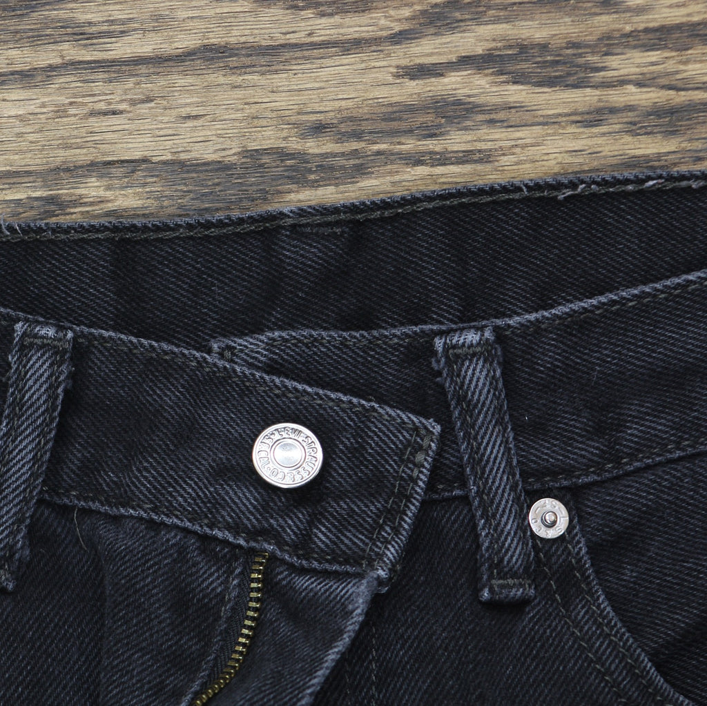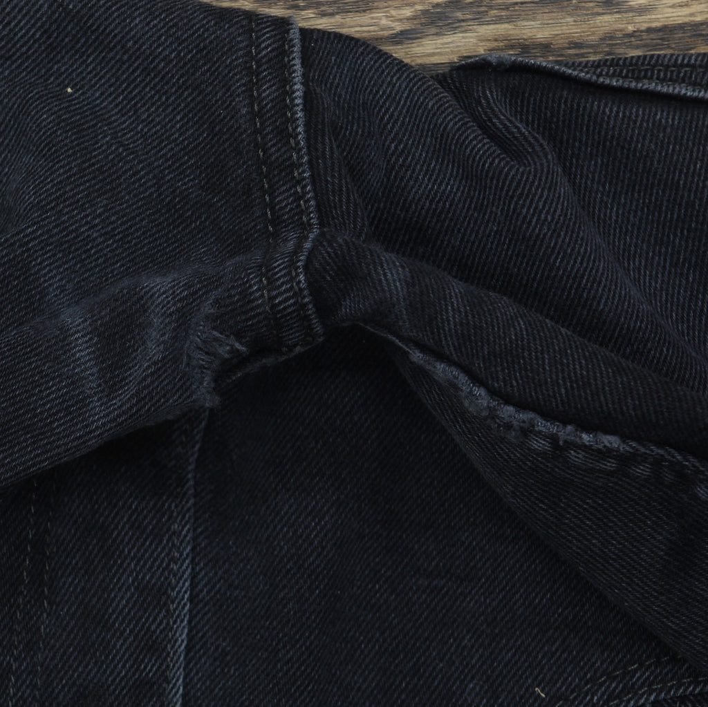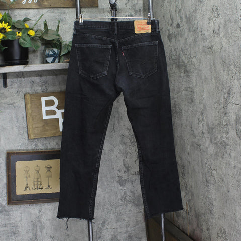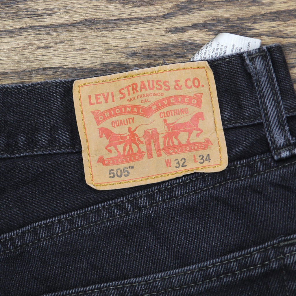 - Condition Description: Product is remade from a mens levis 505 jeans size 32x34. Legs have been cut and are fraying. There is a patch of fraying on the back of the product. Minor fabric wear.