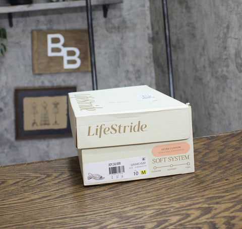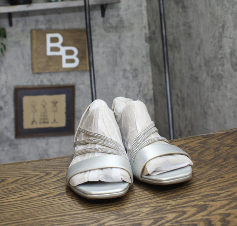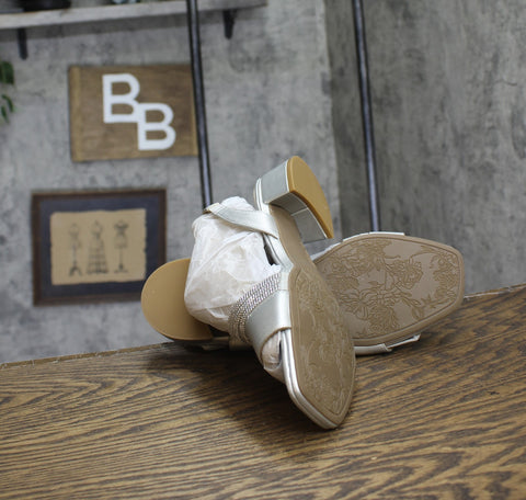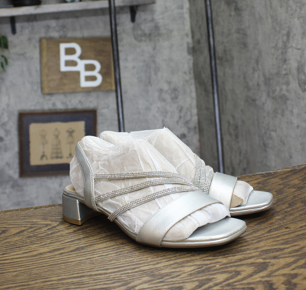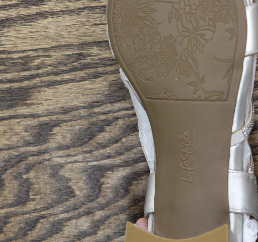 Faux leather upper with a square toe, heel sling strap with stretch gore panel, and rhinestone-accented straps Insole board partially crafted with recycled materials Soft System comfort package provides all-day support, flex, and cushioning Secret Cushion insole with a hidden full-length cushioned footbed for 24/7 heel-to-toe comfort Just Right Height 1 and 1/4 inch block heel