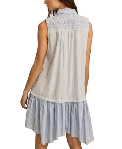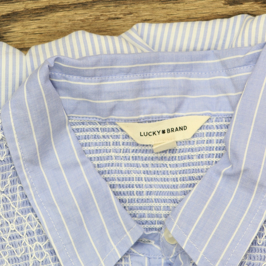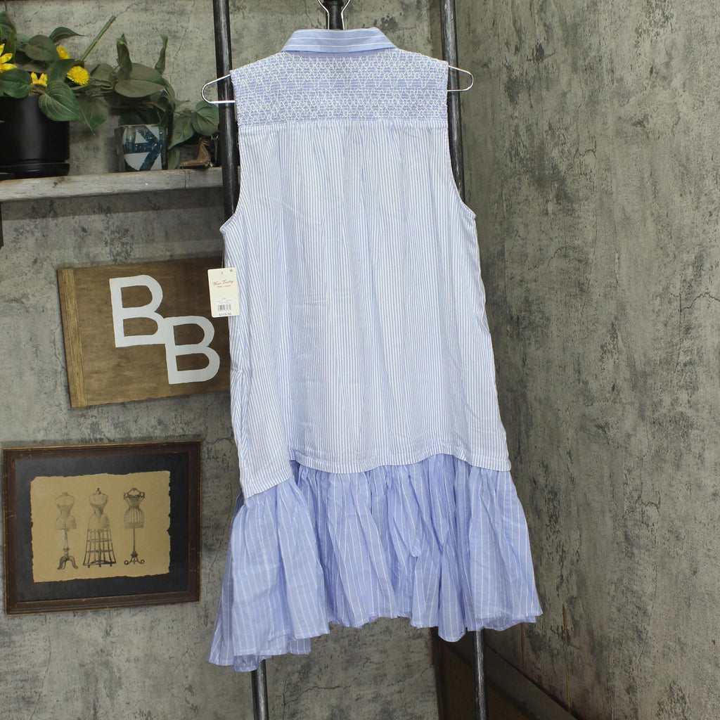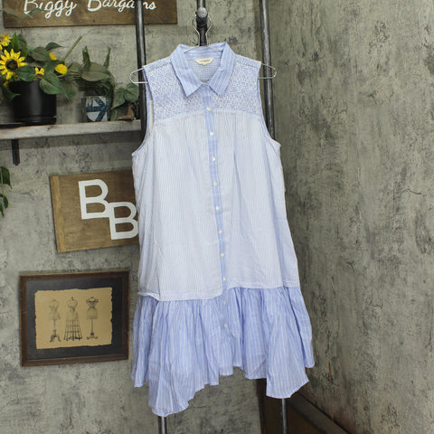 Lucky Brand Womens Breezy Cotton Sleeveless Shirt Dress 133380 Blue Stripe L