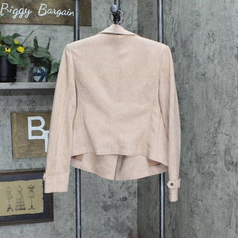 M Magaschoni Womens Faux Suede Open Front Motorcycle Jacket Blush Pink M