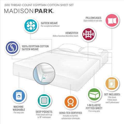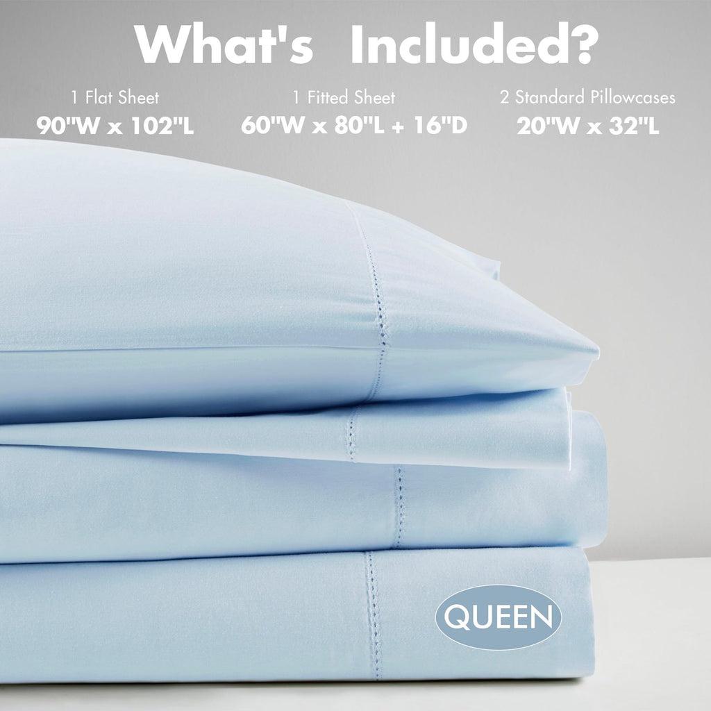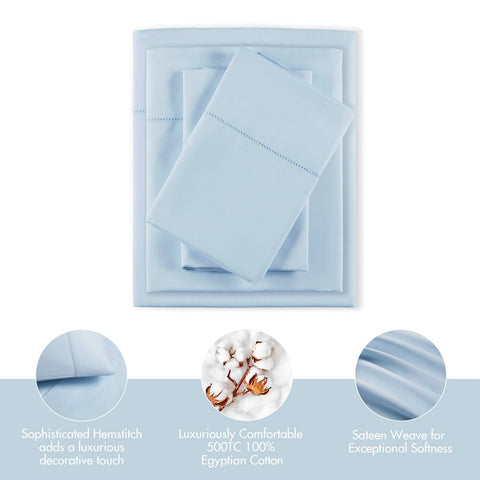 Cotton's natural coolness, breathability, and moisture-absorption properties ensure year-round comfort Casual Luxury: Sophisticated modern sheet set with subtle colors and luxurious hemstitch details. Fitted sheet accommodates most mattress, meantime equips with a durable 1" thick elastic ensuring a secure fit. High Quality: Elevate your comfort with this certified 100% egyptian cotton sheet that's also Oeke-Tex certified to be free from any substance or chemicals for superior sheet quality. Set include: 1 Flat Sheet: 90"W x 102"L, 2 Standard Pillowcases: 20"W x 32"L, 1 Fitted Sheet: 60"W x 80"L + 16"D Care Instructions: Machine wash cold. Gently and separately. Do not bleach, Tumble dry low. Iron on medium temperature if needed