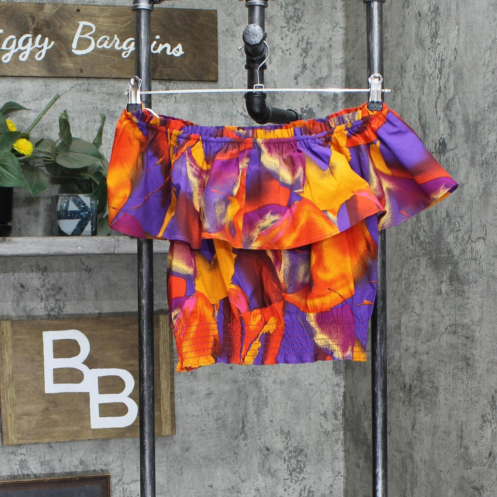 Nine West Squareneck Off the Shoulder Blouse Shirt Top Multicolor Purple S