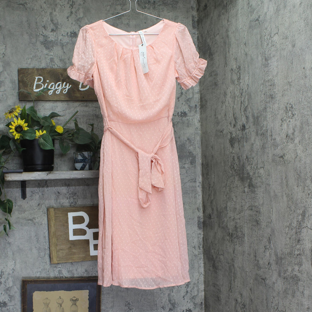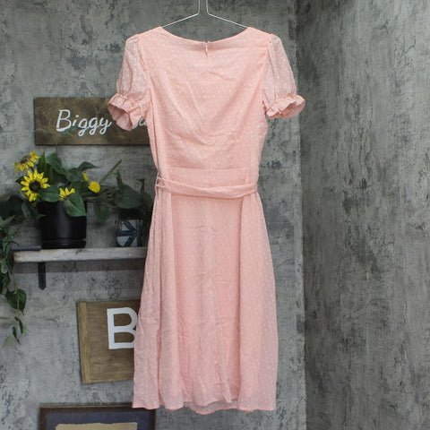 Ny Collection Short Sleeve Belted Swiss Dot Dress Belted Mellow Rose Pink PM