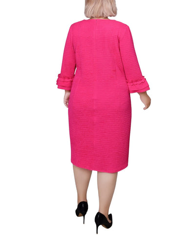 Ny Collection Textured Knit Plus Size Dress with 3/4 Sleeves Havana Pink 3X