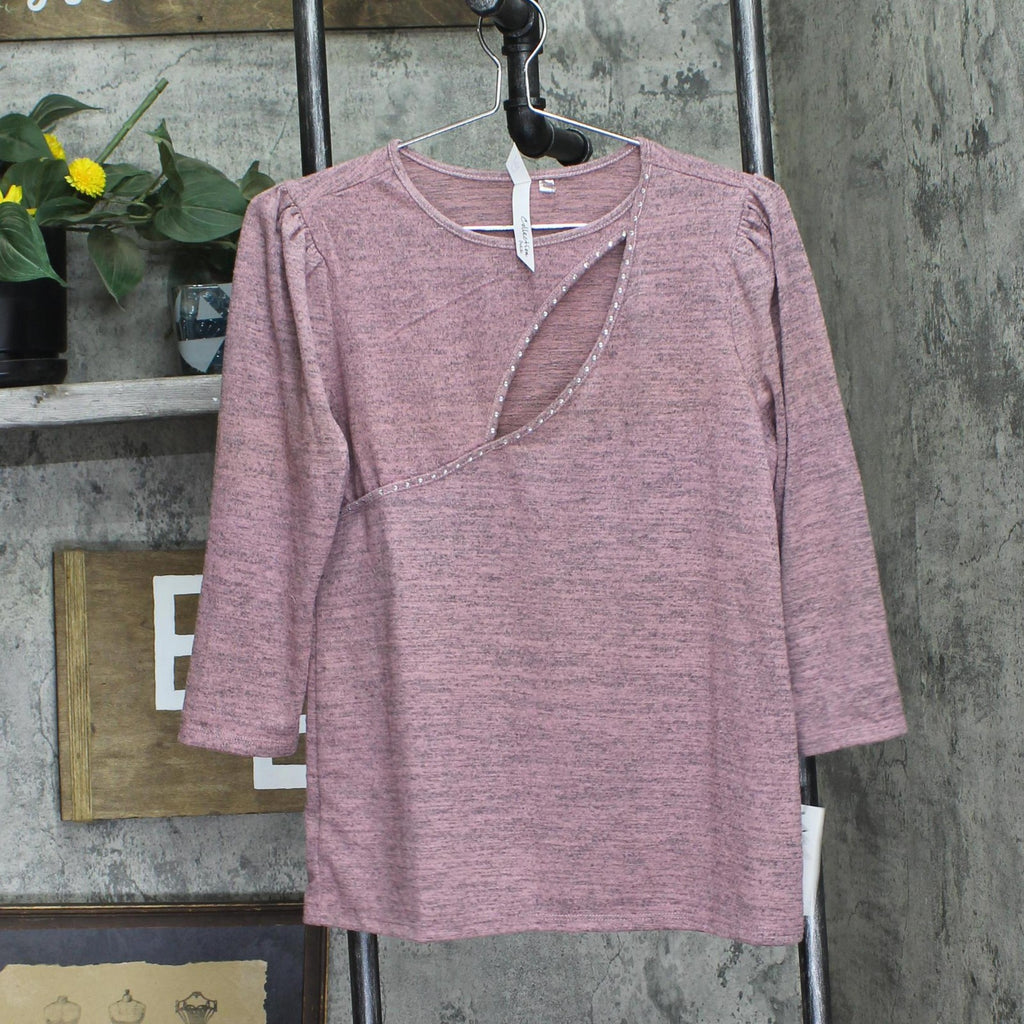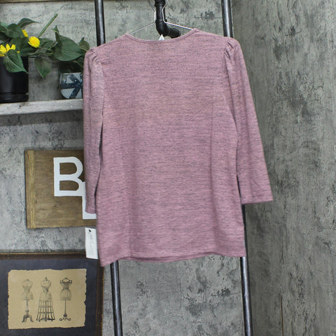 Perfect for day or night, this Petite NY Collection marled tee features a cutout detail on the round neckline and 3/4 length sleeves.