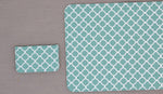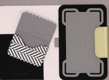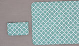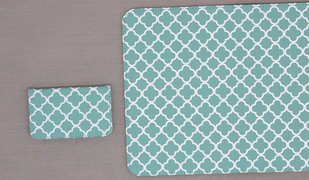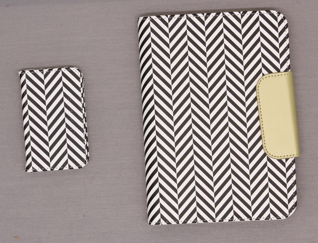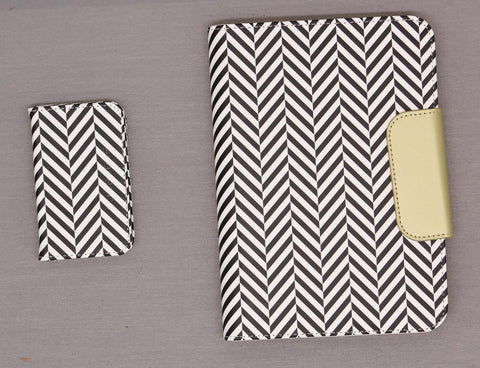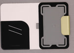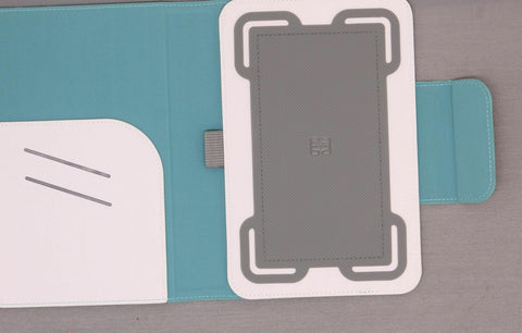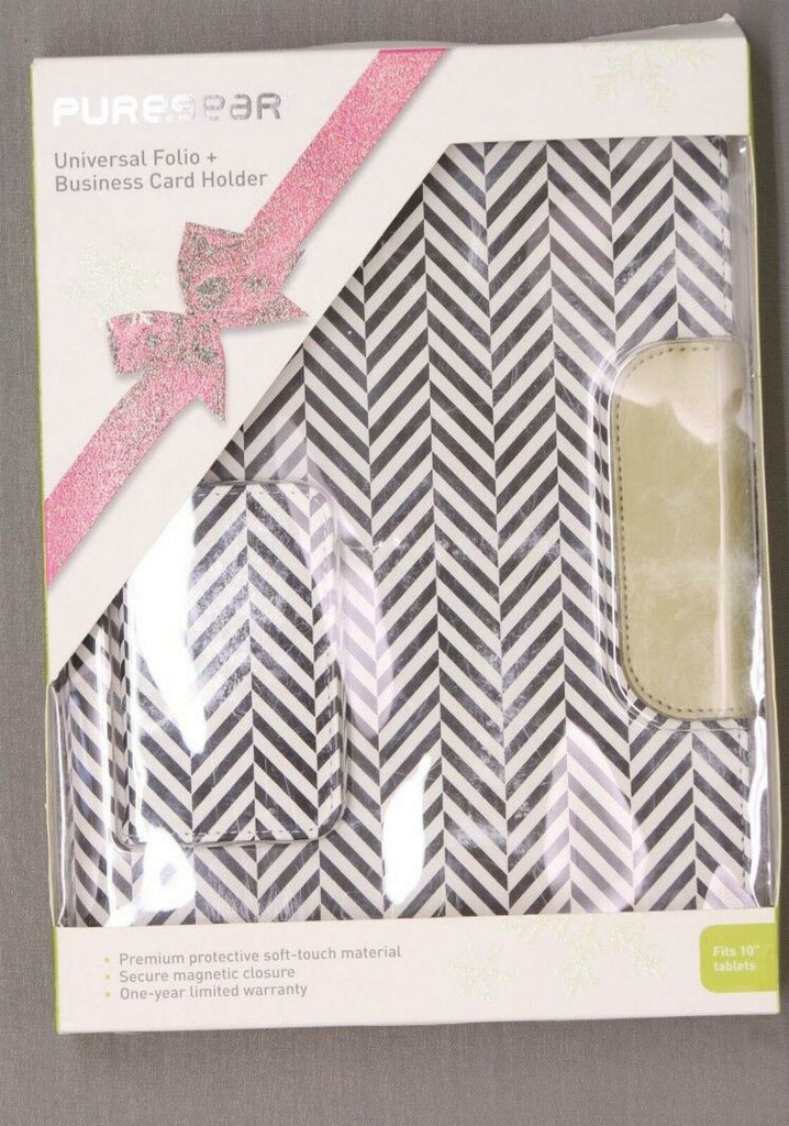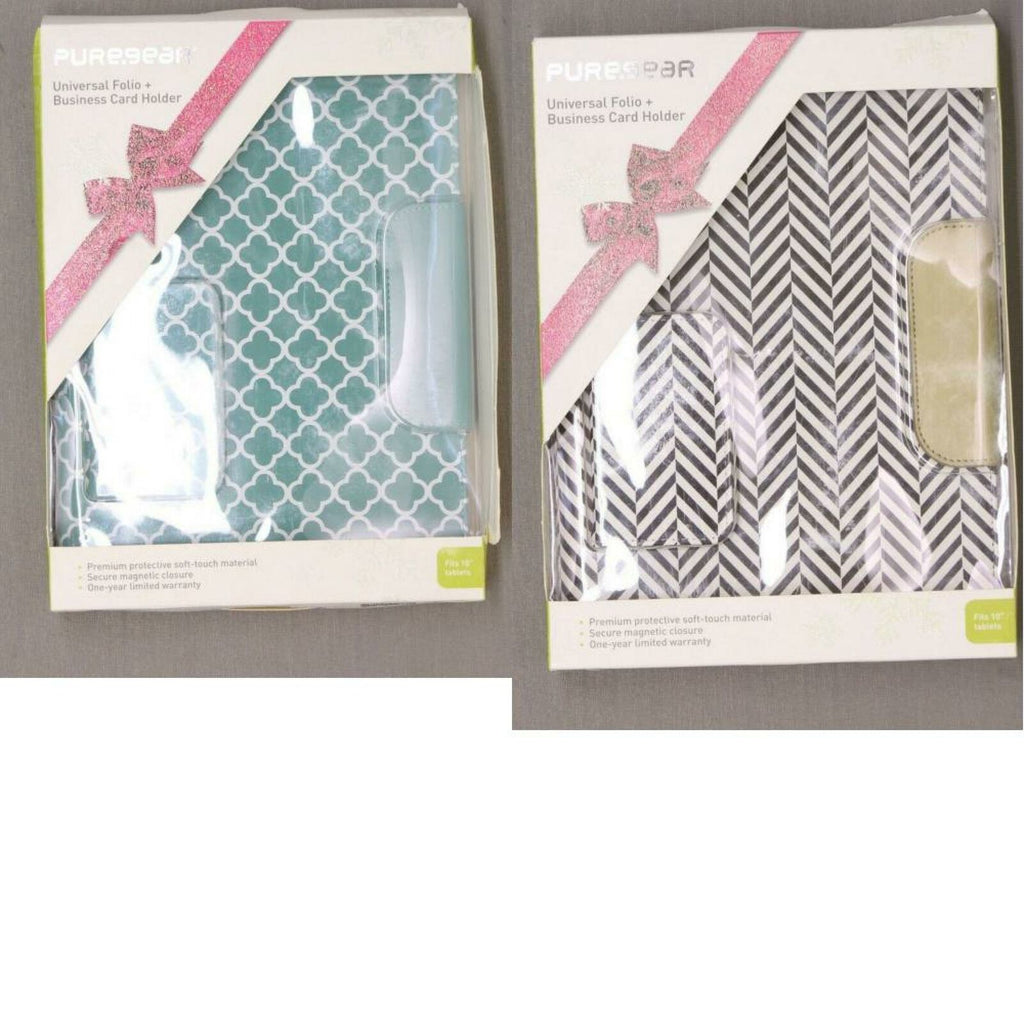 This universal tablet case folio fits 10 inch tablets including Apple, Samsung, Google and more with flexible bands securely hold tablet in place. Protective soft-touch material in a quatrefoil pattern. Magnetic closure with pockets for documents and ID/credit cards and a holder for a stylus or pen. Props into horizontal position for easy viewing or typing. Coordinating business card holder holds up to 25 business cards, IDs, or multiple credit cards.
