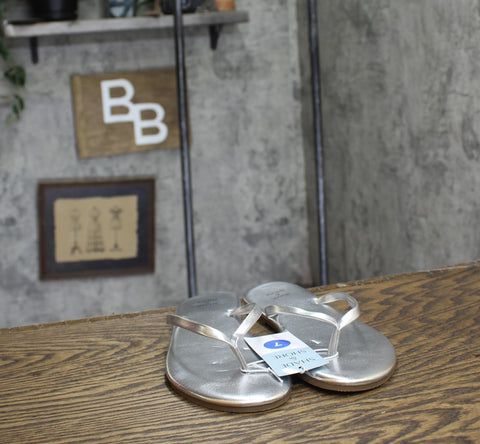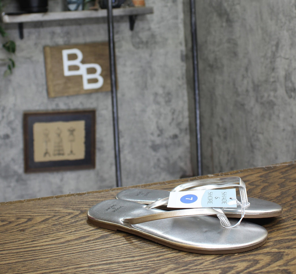 Shade & Shore Womens Cali Thong Flip Flop Sandals Metallic Silver Gray 7M