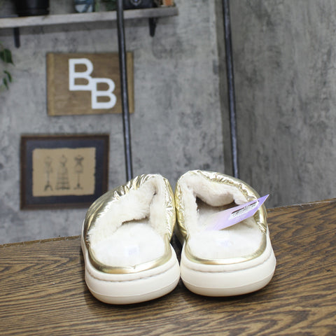 Enjoy laid-back days at home in the cozy comfort of these Merritt Slide Slippers from Stars Above. The round-toe slide slippers feature a cushioned insole construction with faux fur lining to offer your feet plush comfort. Designed with an indoor/outdoor outsole, these slide slippers feature a slip-on design that allows for quick and easy wear.Stars Above: A restful balance of comfort & style. Faux fur slide sandals Cushioned insole construction Round closed-toe design Medium width Indoor/outdoor outsole Sizing: Womens Fabric Name: Faux Fur Care and Cleaning: Air Dry, Spot or Wipe Clean Footwear Lining Material: 100% Polyester Construction: Cushioned Insole, Non Marking Sole Footwear Insole Material: 100% Polyester Features: Slip On Toe Style: Round Toe Footwear Upper Material: 100% Polyester Footwear Outsole Material: 40% EVA (Ethylene Vinyl Acetate) and 60% Polyester Heel: No Heel Shoe Width: Medium Footwear toe openness: Closed Toe Footwear outsole details: Indoor/Outdoor Outsole