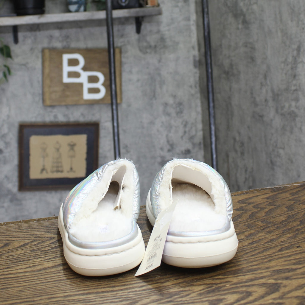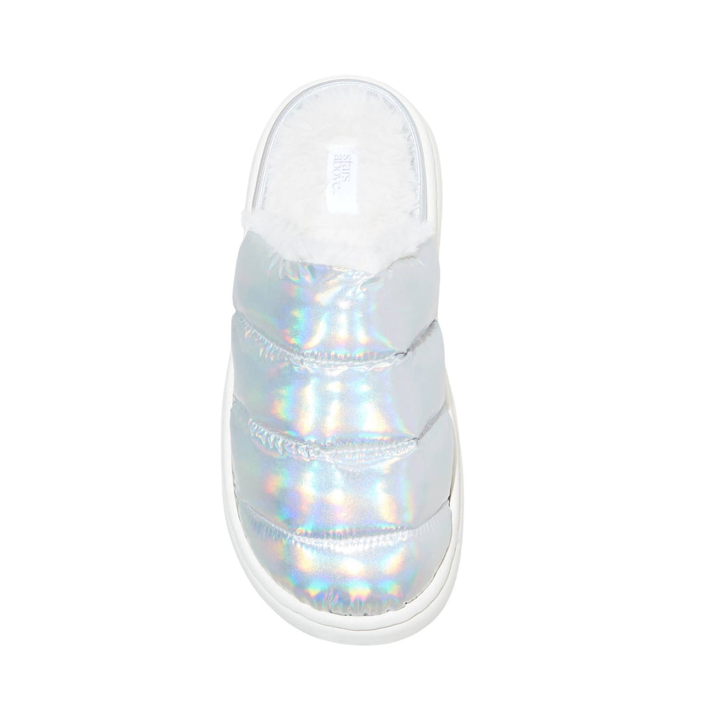 Enjoy laid-back days at home in the cozy comfort of these Merritt Slide Slippers from Stars Above. The round-toe slide slippers feature a cushioned insole construction with faux fur lining to offer your feet plush comfort. Designed with an indoor/outdoor outsole, these slide slippers feature a slip-on design that allows for quick and easy wear.Stars Above: A restful balance of comfort & style. Faux fur slide sandals Cushioned insole construction Round closed-toe design Medium width Indoor/outdoor outsole Sizing: Womens Fabric Name: Faux Fur Care and Cleaning: Air Dry, Spot or Wipe Clean Footwear Lining Material: 100% Polyester Construction: Non Marking Sole, Cushioned Insole Footwear Insole Material: 100% Polyester Features: Slip On Toe Style: Round Toe Footwear Upper Material: 100% Polyester Footwear Outsole Material: 40% EVA (Ethylene Vinyl Acetate) and 60% Polyester Heel: No Heel Shoe Width: Medium Footwear toe openness: Closed Toe Footwear outsole details: Indoor/Outdoor Outsole