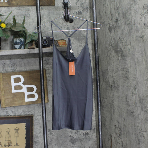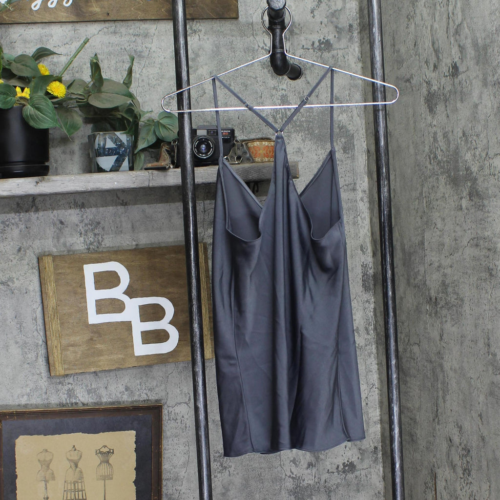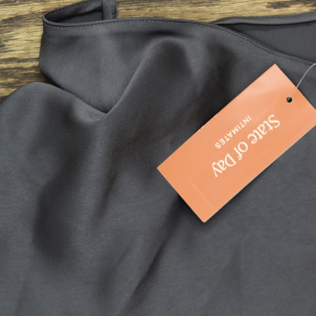 State of Day Womens Crepe De Chine Camisole Pant Pajama Set Ebony Gray M