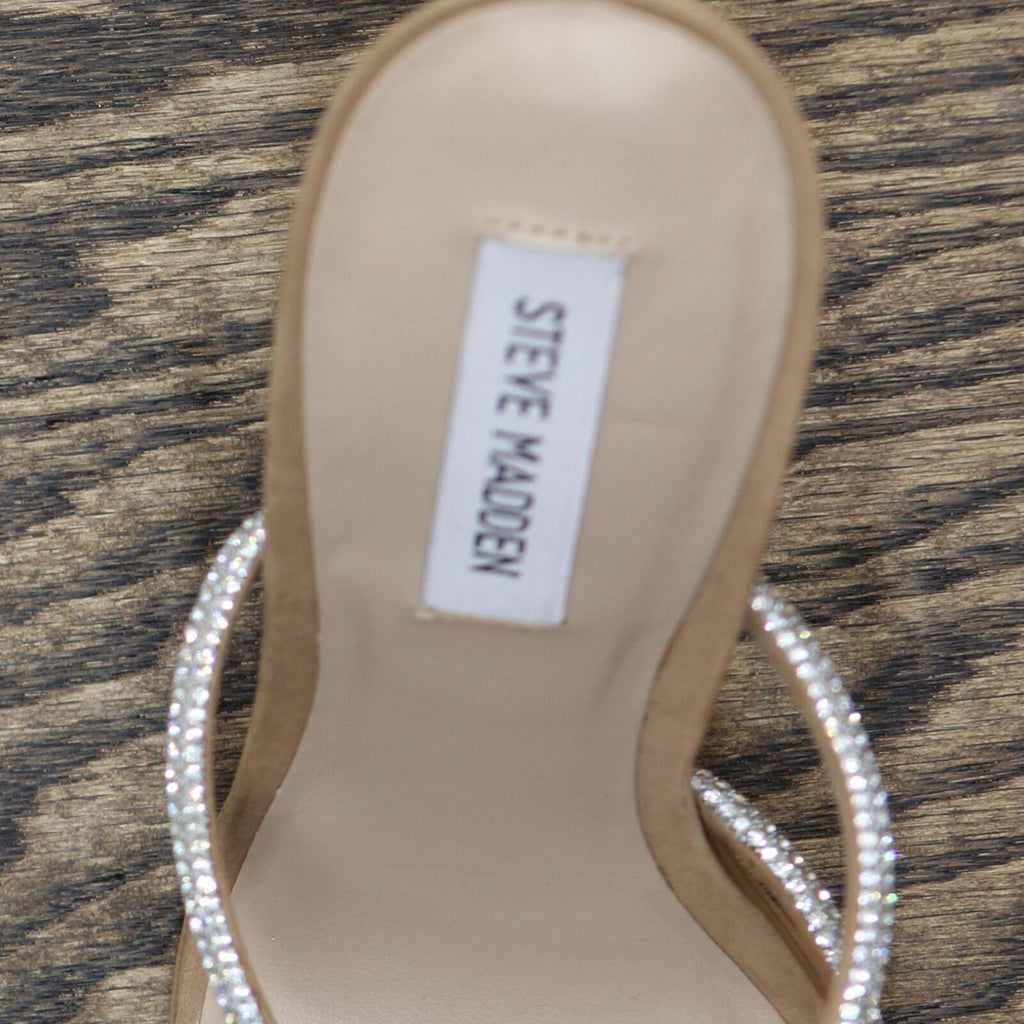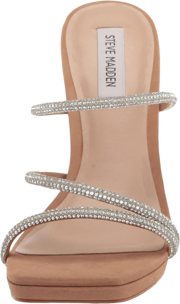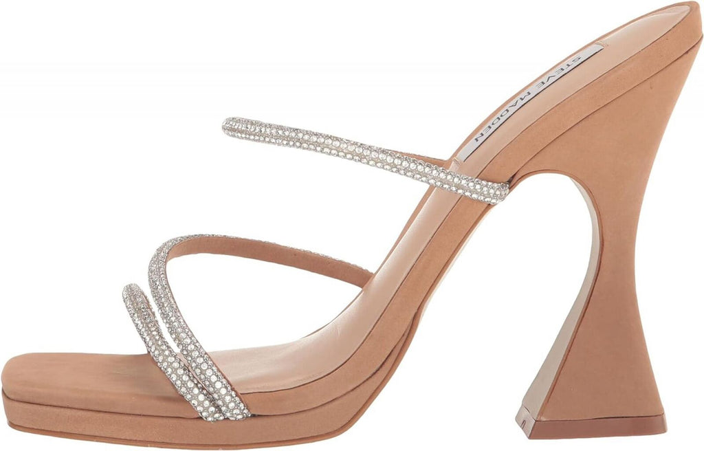 A rhinestone embellished, strappy upper and square open toe silhouette updates our favorite flared heel look this season, shop LIBBIE heeled sandal by Steve Madden