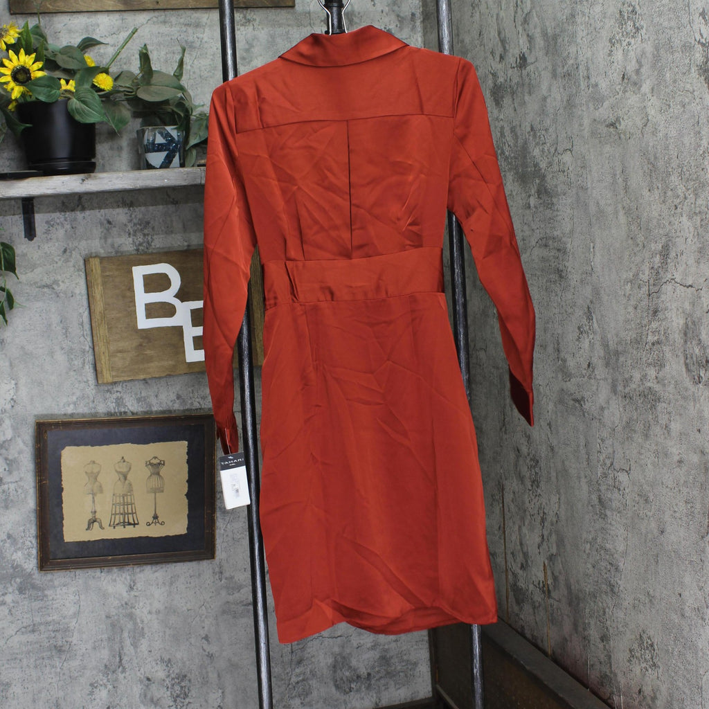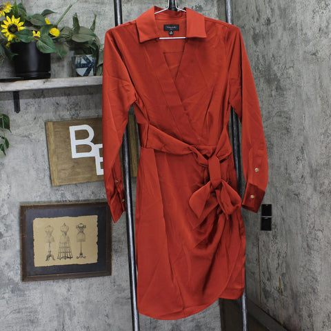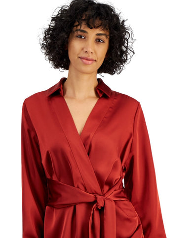 Sophisticated and flattering, this Tahari Asl wrap dress has a structured collar and waist-cinching tie.