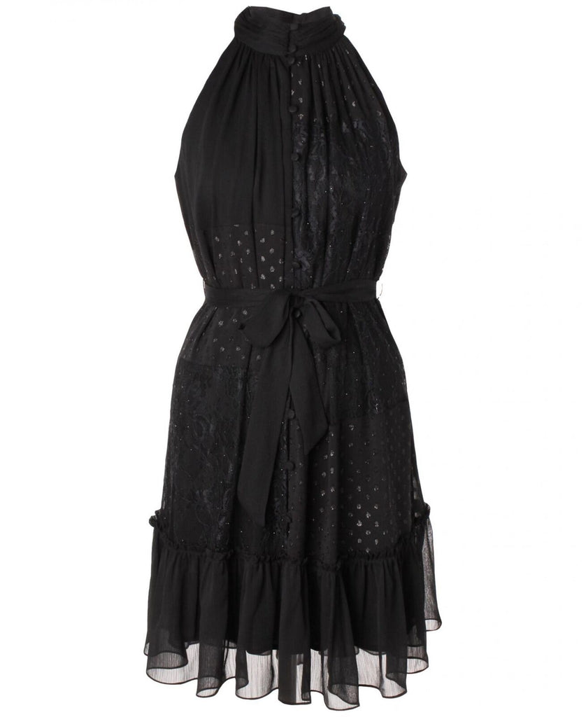 Introducing your new party outfit: Taylor's lace-trim halter dress, featuring a flounce hem.