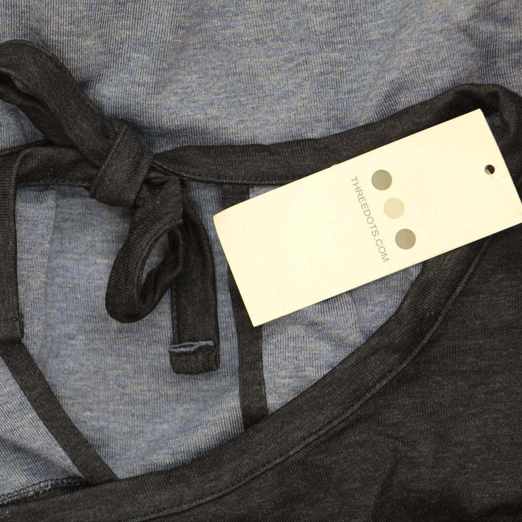 Three Dots Women's Reversible Colorblock Loose Shirt Dress Indigo Blue L