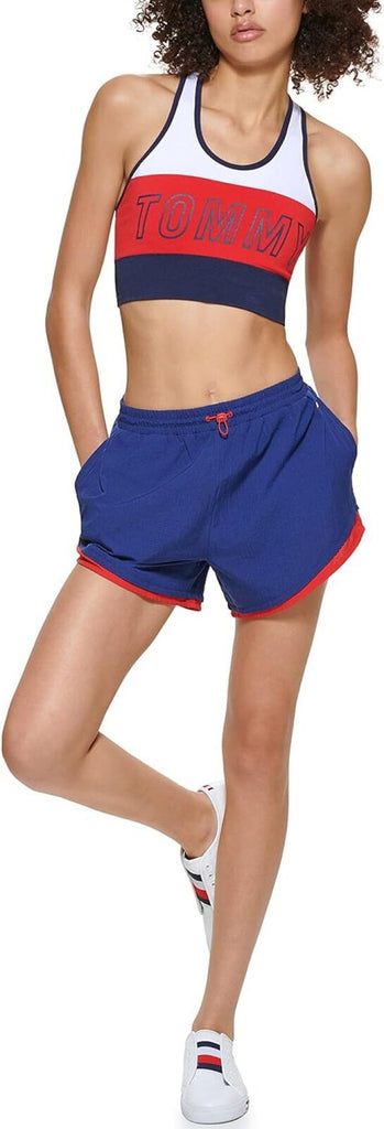 This Tommy Hilfiger Sport womens Sport Bottom is a running shorts interior brief on-seam pockets 2-color combo contrast trim