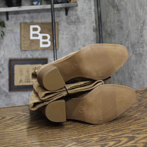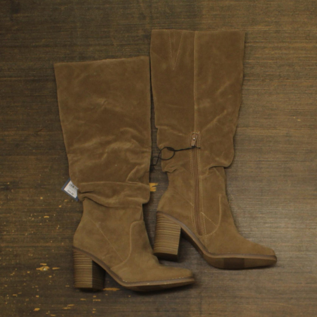 These Harlan Dress Boots from Universal Thread will make all of your winter ensembles stand out thanks to their knee-high scrunched-up silhouette, stylish textured design and versatile taupe color. The medium-width boots have a cushioned footbed, soft lining and insole to keep your feet nice and happy, while the three-inch block heel adds a statement lift to your height. The side zipper allows for easy and secure wear, and the pointed toe completes the design with a chic look. Universal Thread: The denim collection that's true to you.