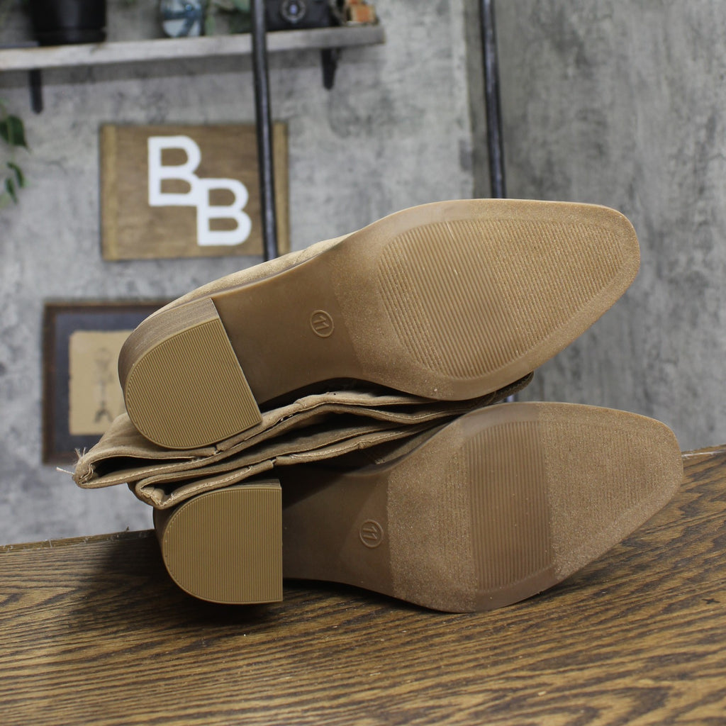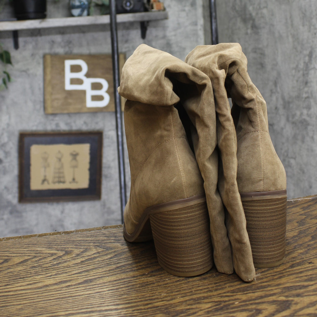 These Harlan Dress Boots from Universal Thread will make all of your winter ensembles stand out thanks to their knee-high scrunched-up silhouette, stylish textured design and versatile taupe color. The medium-width boots have a cushioned footbed, soft lining and insole to keep your feet nice and happy, while the three-inch block heel adds a statement lift to your height. The side zipper allows for easy and secure wear, and the pointed toe completes the design with a chic look. Universal Thread: The denim collection that's true to you.