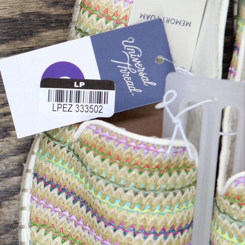 Add a touch of elevated style to your casual days with these Skipper Espadrille Flats from Universal Thread. Designed with stitched detailing on the heels, these pull-on espadrille flats feature a cushioned insole construction for comfortable walking. Slip them on with a sundress for brunch with friends, or pair them with skinny jeans and a button-down for running errand on weekends.