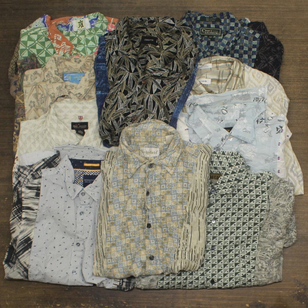 • Condition Description: Lot includes 4 random shirts. The length of the shirts vary on each section so the items are designed to be worn tucked in. The varied length fabric is finished and not raw. Condition will range from new with tags to used with minor fabric wear. Material content is assorted. Age of the product will range from 80s vintage to new. Product is remade from mens camp shirts in assorted brands,colors and sizes.