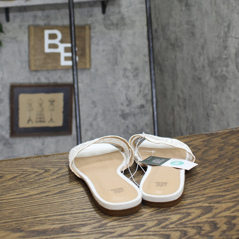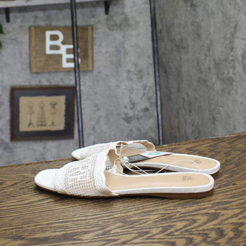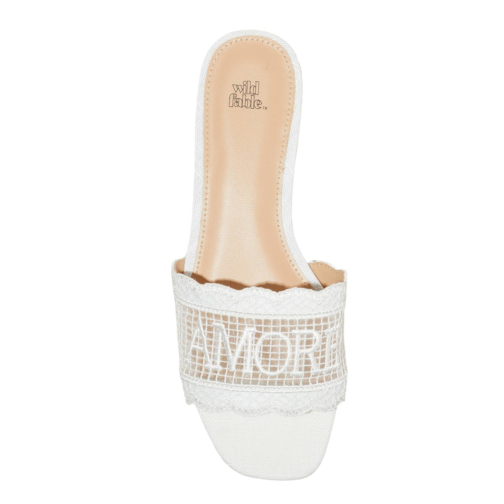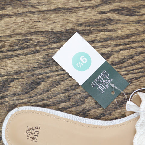 Josephina lace flat sandals from Wild Fable with a memory foam insole. Feature a round open-toe silhouette with single mesh band on the vamp. Lace flat sandals Mesh band upper Memory foam insole Open round-toe and backless design Textured outsole Slip-on style Sizing: Womens Care and Cleaning: Clean With Mild Detergent Footwear Lining Material: 100% Polyurethane Construction: Memory Foam Insole Footwear Insole Material: 100% Polyurethane Features: Slip On Toe Style: Round Toe Footwear Upper Material: 100% Polyester Footwear Outsole Material: 58% Polyester and 42% TPR (Thermoplastic Rubber) Heel: No Heel Shoe Width: Medium Footwear toe openness: Open Toe Footwear outsole details: Textured Outsole