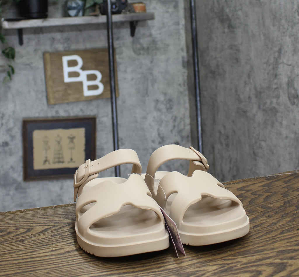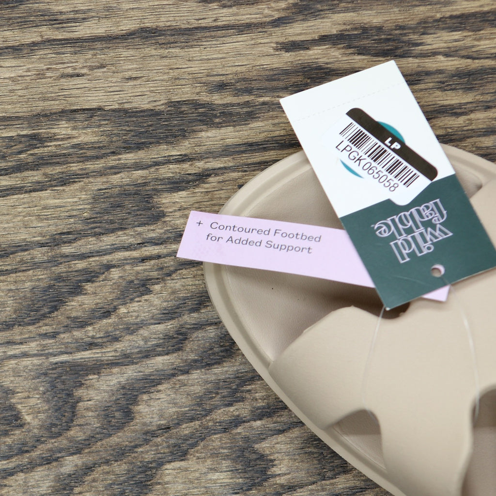 Maysen footbed sandals from Wild Fable with 100% EVA construction. Feature a wide vamp band with statement cutouts and a buckled ankle strap for a customizable fit. Designed with an open round-toe, no-heel silhouette. Footbed sandals Statement cutout vamp Buckled ankle strap 100% EVA construction Open round toe and backless design Textured outsole Slip-on style Sizing: Womens Construction: Contoured Footbed, Non Marking Sole Footwear Insole Material: 100% EVA (Ethylene Vinyl Acetate) Features: Slip On Care and Cleaning: Clean With Mild Detergent Footwear Lining Material: 100% EVA (Ethylene Vinyl Acetate) Toe Style: Round Toe Footwear Upper Material: 100% EVA (Ethylene Vinyl Acetate) Heel: No Heel Footwear Outsole Material: 100% EVA (Ethylene Vinyl Acetate) Shoe Width: Medium Footwear toe openness: Open Toe Footwear outsole details: Textured Outsole