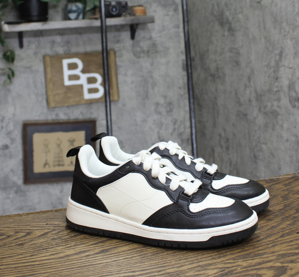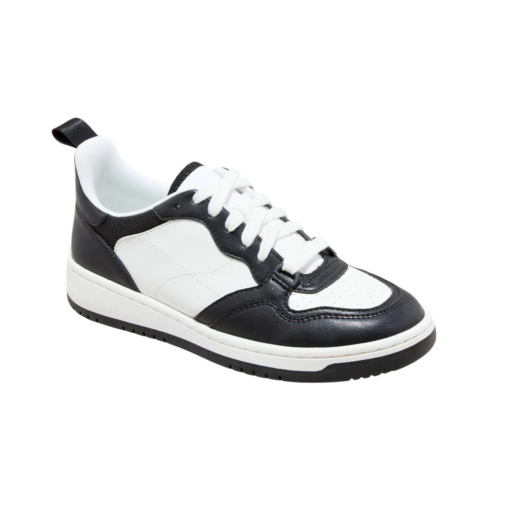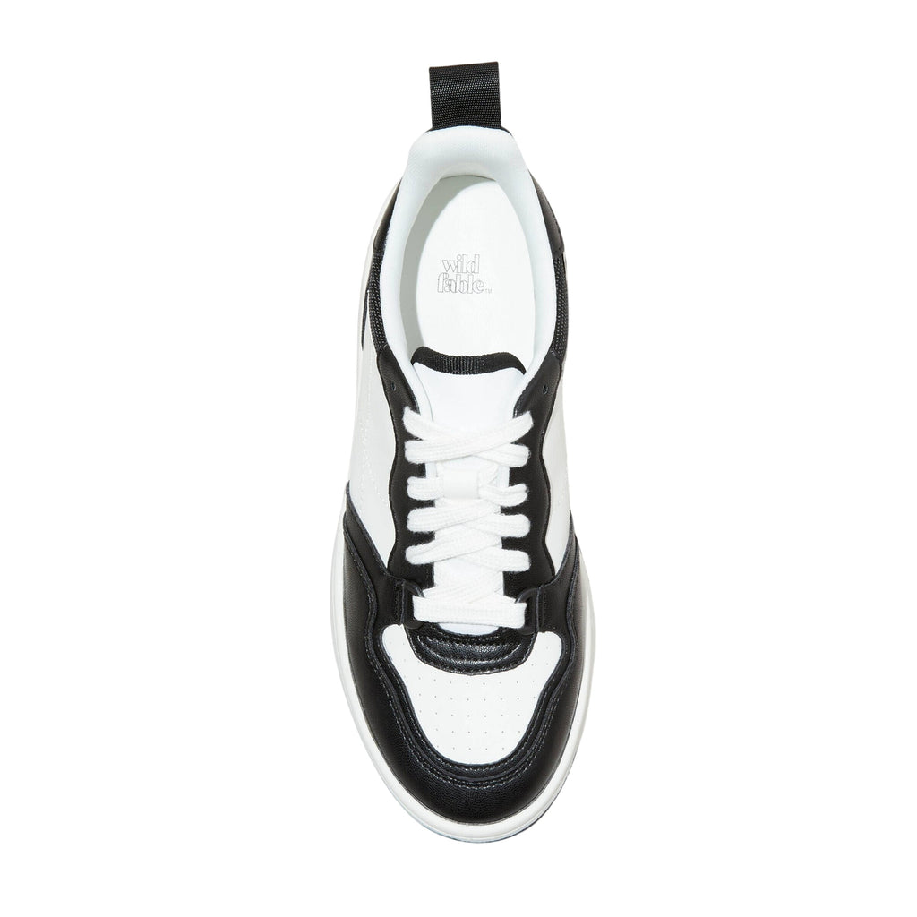Netty fashion sneakers from Wild Fable with a faux-leather upper featuring a stylish two-tone paneled design. Feature a lace-up front and a low-top back with a pull tab loop. Medium-shoe width with memory foam footbed to keep your feet comfy all day. Low-top sneakers with faux-leather upper Lace-up front Memory foam insole Round toe and medium shoe width Textured outsole Sizing: Womens Construction: Memory Foam Insole Footwear Insole Material: 100% Polyurethane Features: Lace Up Care and Cleaning: Clean With Mild Detergent Footwear Lining Material: 100% Polyester Fabric Name: Faux Leather Toe Style: Round Toe Height Type: Low Top Footwear Upper Material: 95% Polyurethane and 4% Polyester and 1% Zinc Alloy Heel: No Heel Footwear Outsole Material: 58% Leather and 42% TPR (Thermoplastic Rubber) Shoe Width: Medium Footwear toe openness: Closed Toe Footwear outsole details: Textured Outsole Battery: No Battery Used