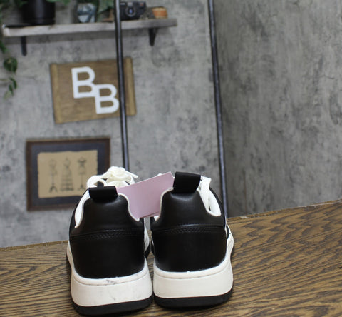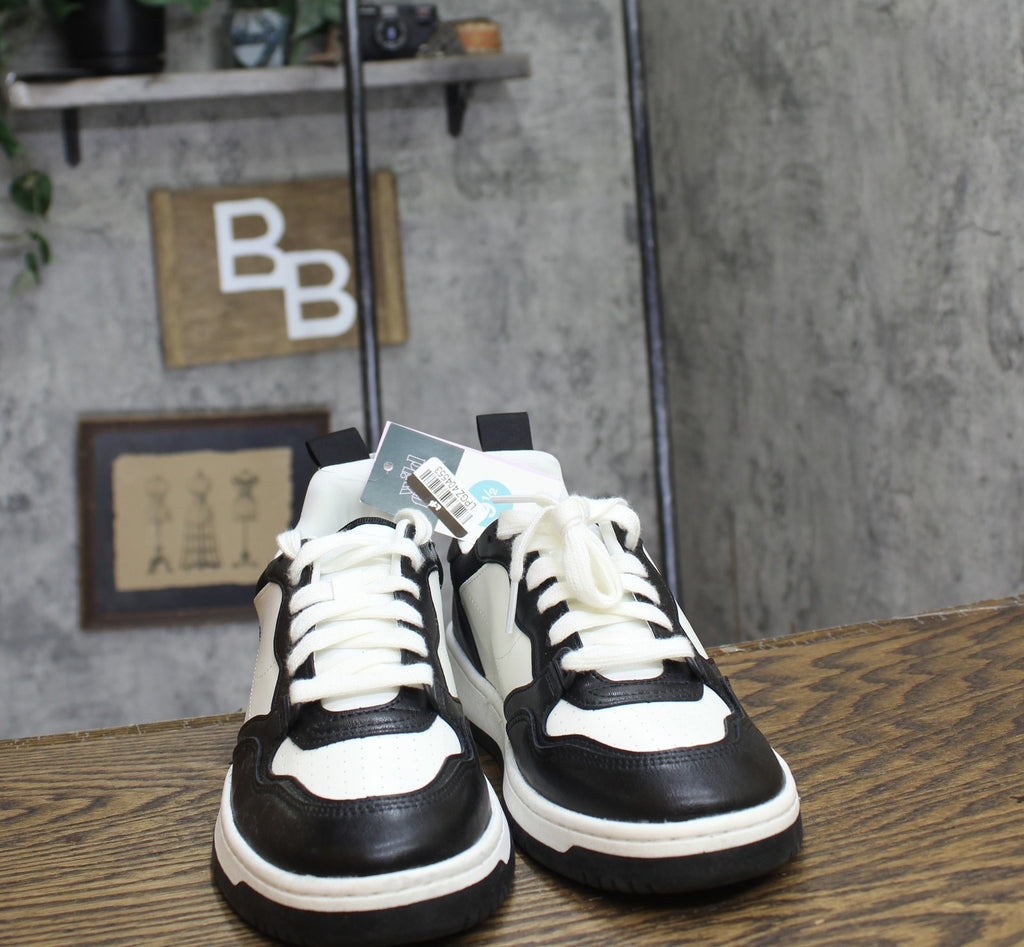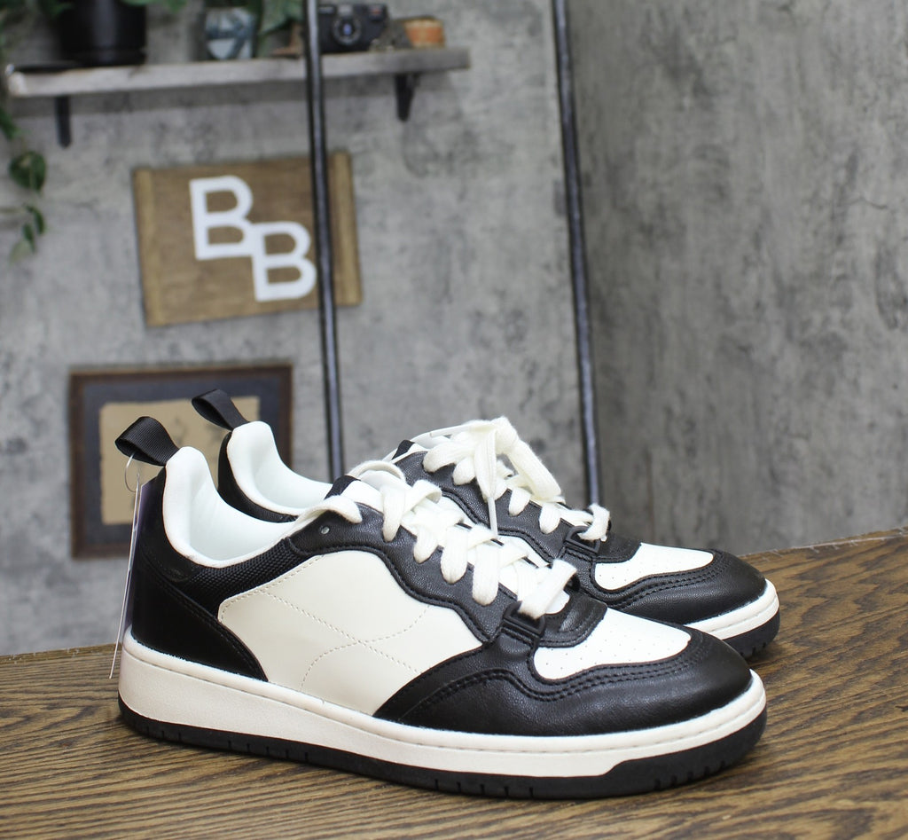 Netty fashion sneakers from Wild Fable with a faux-leather upper featuring a stylish two-tone paneled design. Feature a lace-up front and a low-top back with a pull tab loop. Medium-shoe width with memory foam footbed to keep your feet comfy all day. Low-top sneakers with faux-leather upper Lace-up front Memory foam insole Round toe and medium shoe width Textured outsole Sizing: Womens Construction: Memory Foam Insole Footwear Insole Material: 100% Polyurethane Features: Lace Up Care and Cleaning: Clean With Mild Detergent Footwear Lining Material: 100% Polyester Fabric Name: Faux Leather Toe Style: Round Toe Height Type: Low Top Footwear Upper Material: 95% Polyurethane and 4% Polyester and 1% Zinc Alloy Heel: No Heel Footwear Outsole Material: 58% Leather and 42% TPR (Thermoplastic Rubber) Shoe Width: Medium Footwear toe openness: Closed Toe Footwear outsole details: Textured Outsole Battery: No Battery Used