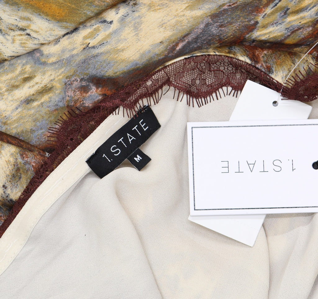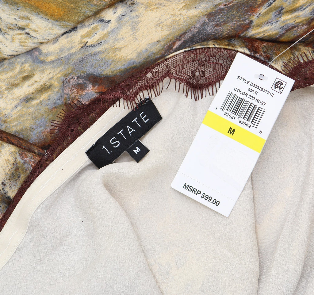 An artsy abstract print and sleek halter neckline bring a contemporary vibe to 1.state's sleek slip dress, a maxi length design trimmed with lace for a charming finish. About The Brand: 1.State is known for luxurious textiles, interesting prints, sophisticated colors, and ultra-flattering fits.