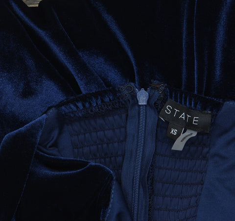 1.STATE Womens Velvet Midi Dress DS93017245AM Navy Blue XS