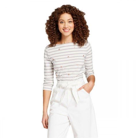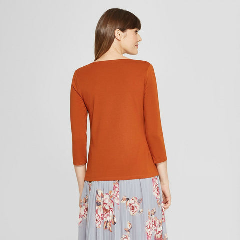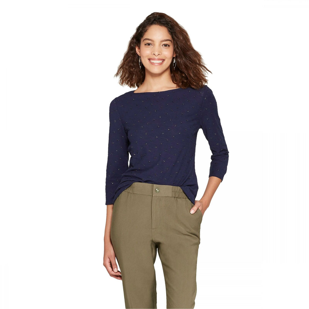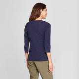 You'll love being able to put together a variety of casual or dressy looks with the 3/4-Sleeve Boatneck T-Shirt from A New Day, which makes a great standalone or layering piece. The classic design of this boatneck tee makes it easy to incorporate with your everyday style, and the fitted silhouette not only provides you with a flattering look, but also makes for easy layering with your favorite cardigans, vests, parkas and more. With the ultra-soft cotton blend, you'll keep comfortable from day to night and season to season, no matter where you're off to for the day. Pair with distressed boyfriend jeans and cool sneakers for a casual-cute look, or opt for something dressier with an A-line skirt, solid tights and knee-high boots.