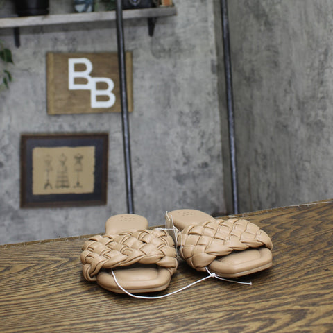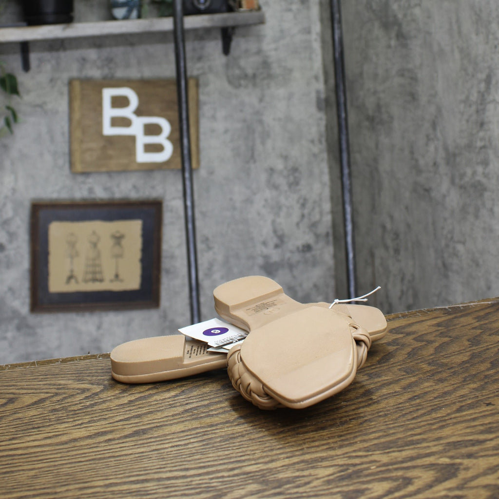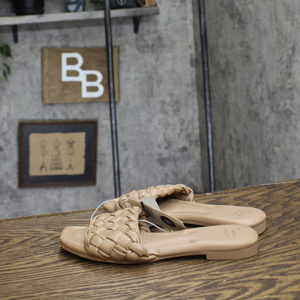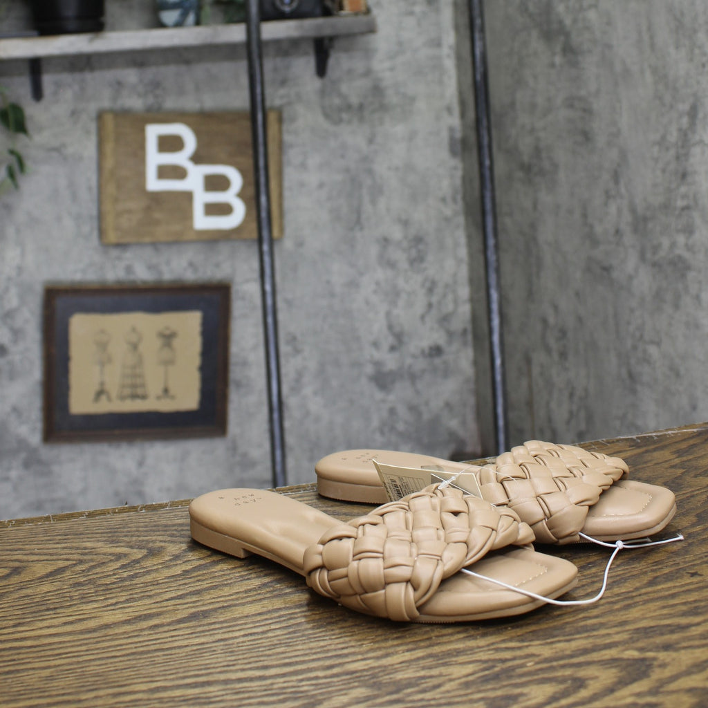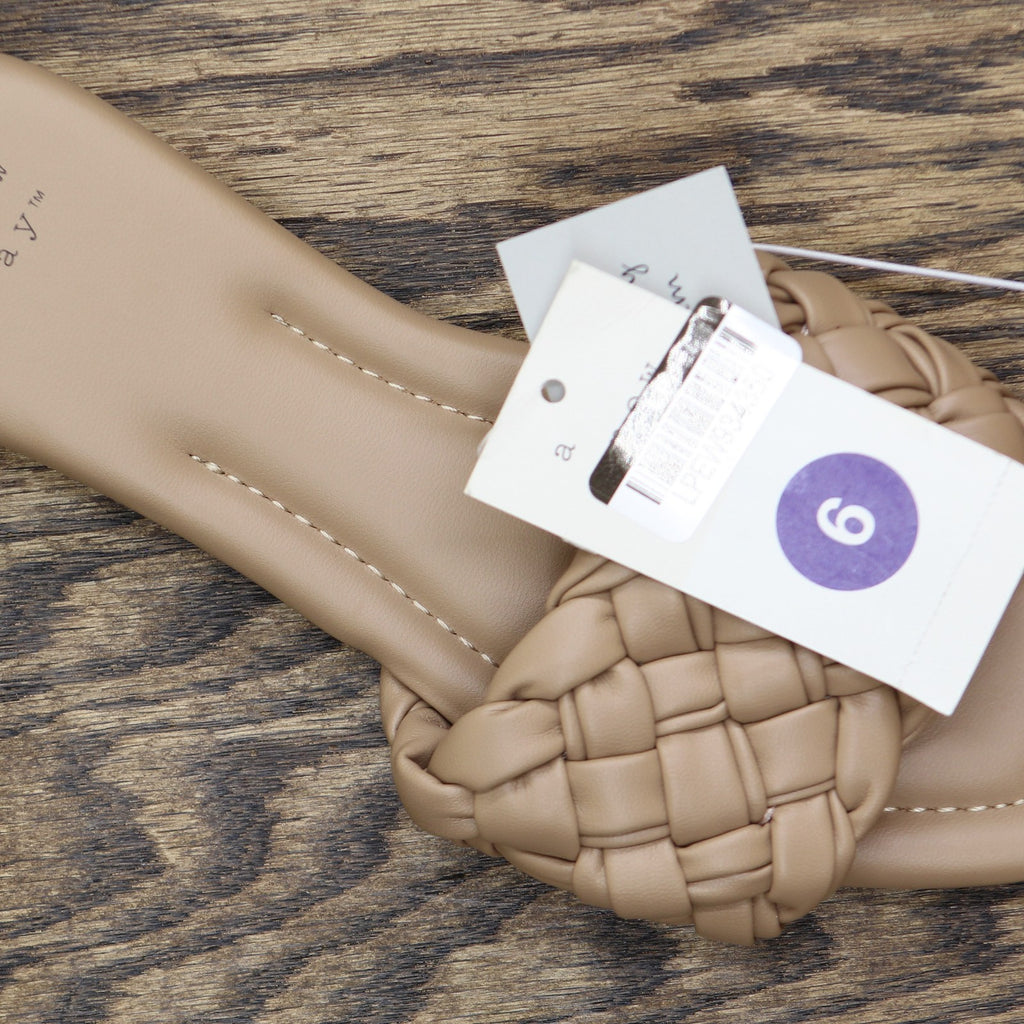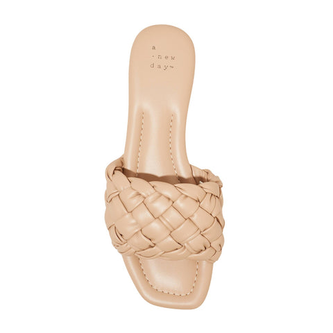 The Carissa Slide Sandals from A New Day make a great pick for casual warm-weather wear. The wide-width slide sandals in a neutral color make a comfy and versatile pick in your footwear collection. They feature a breezy open-toe design that's complete with a woven instep top band for textured style. These sandals come with slip-on style for ease of wear, while the simple design is easy to pair with anything from jeans and a tee to a casual dress.A New Day: Style that goes wherever you do. Carissa slide sandals Memory foam insole construction Almond open toe Wide width Slip-on design Sizing: Womens Care and Cleaning: Clean With Mild Detergent Footwear Lining Material: 100% Polyurethane Construction: Instep Strap, Memory Foam Insole Footwear Insole Material: 100% Polyurethane Features: Slip On Toe Style: Almond Toe Footwear Upper Material: 100% Polyurethane Footwear Outsole Material: 100% TPR (Thermoplastic Rubber) Heel: No Heel Shoe Width: Medium Footwear toe openness: Open Toe Footwear outsole details: Textured Outsole