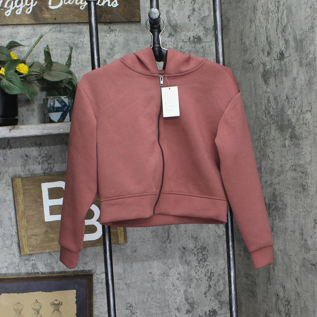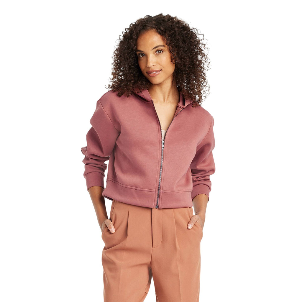 Refresh your winter wardrobe with this Double-Knit Zip Hoodie Sweatshirt from A New Day. Made from a heavyweight fabric blend with added spandex, this standard-fit sweatshirt is fashioned in a solid shade with drop-shoulder long sleeves and banded edges. A hooded neckline and a front full-length zipper fastening complete the cozy look with enhanced warmth and functional style. A New Day: Style that goes wherever you do. Double-knit sweatshirt in solid color Made of heavyweight fabric blend with spandex Hooded neckline Drop-shoulder long sleeves Full-length zippered front Mid length Recycled polyester Sizing: Womens Material: 81% Recycled Polyester, 15% Rayon, 4% Spandex Fit: Standard Fit Length: Below Waist Item Style: Basic Sweatshirts Garment Style: Long Sleeve, Front Full Length Zipper Fabric Name: Doubleknit Neckline: Hooded Garment Details: No Pocket Fabric Weight Type: Heavyweight Fabric Garment sleeve style: Basic Sleeve Care and Cleaning: Machine Wash, Tumble Dry