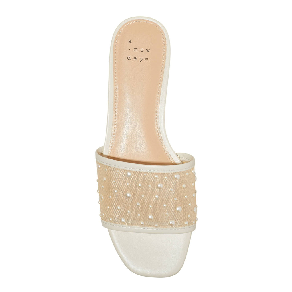 Spruce up your casual footwear collection with these Elain Slide Sandals with Memory Foam Insole from A New Day. These slide sandals feature memory foam insoles for comfortable walking, while the open D-toe and back lend a cool and airy feel. Simply pair them with anything from shorts and a tee to a sundress for effortless styling wherever you go.A New Day: Style that goes wherever you do. Elain slide sandals Memory foam insole Mesh upper band Open D-toe Slip-on design Sizing: Womens Fabric Name: Mesh Care and Cleaning: Clean With Mild Detergent Footwear Lining Material: 100% Polyester Construction: Memory Foam Insole Footwear Insole Material: 100% Polyurethane Features: Slip On Toe Style: D Toe Footwear Upper Material: 69% Polyester and 22% Plastic and 9% Polyurethane Footwear Outsole Material: 56% Polyester and 44% TPR (Thermoplastic Rubber) Heel: No Heel Shoe Width: Medium Footwear toe openness: Open Toe Footwear outsole details: Textured Outsole
