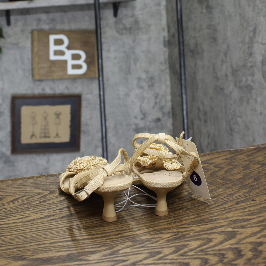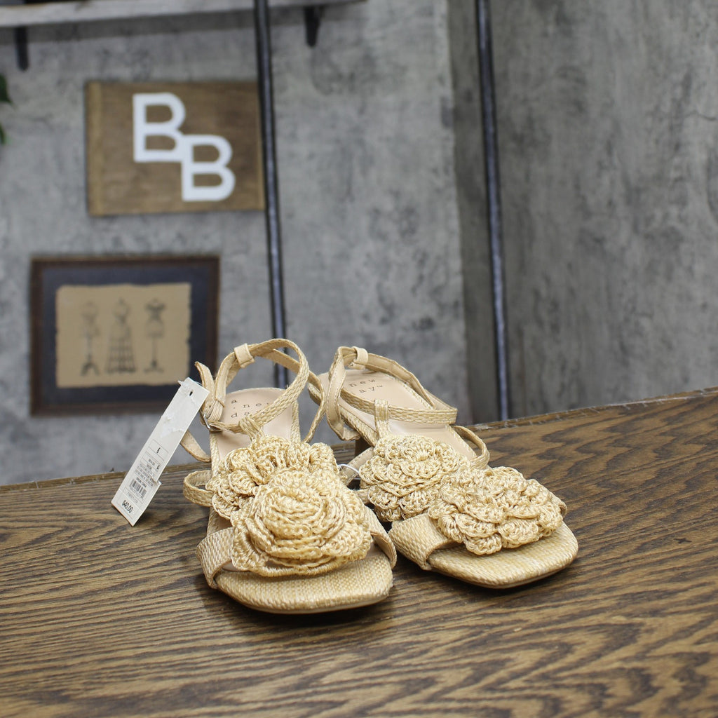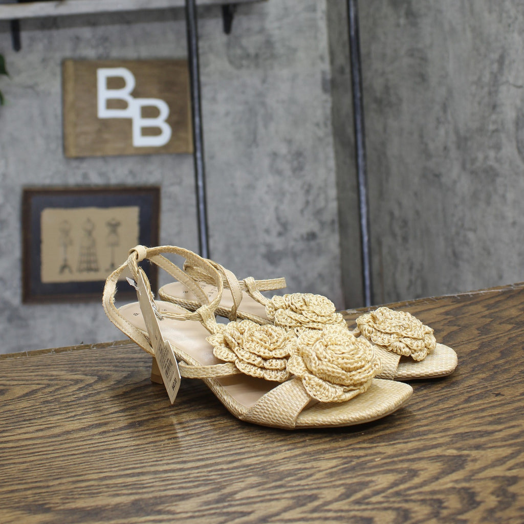 Step into effortless elegance from morning to night with these Esme Floral Crochet Kitten Heels from A New Day. These D-toe heels are designed with crocheted floral detailing on the straps for a standout look. They're set on two-inch Louis heels and boast an ankle buckle closure, providing a stylish lift to your height and a stay-put fit.A New Day: Style that goes wherever you do. Floral crochet kitten heels in tan 2in Louis heel Adjustable buckle strap closure Open D-toe Medium width Sizing: Womens Care and Cleaning: Clean With Mild Detergent Footwear Insole Material: 100% Polyurethane Features: Buckle Construction: Adjustable Buckle Strap Footwear Lining Material: 100% Polyurethane Toe Style: D Toe Footwear Upper Material: 98% Polyester and 2% Zinc Alloy Heel: Approximately 2.0 Inches Louis Heel Footwear Outsole Material: 57% Polyester and 43% TPR (Thermoplastic Rubber) Shoe Width: Medium Footwear toe openness: Open Toe Footwear outsole details: Textured Outsole