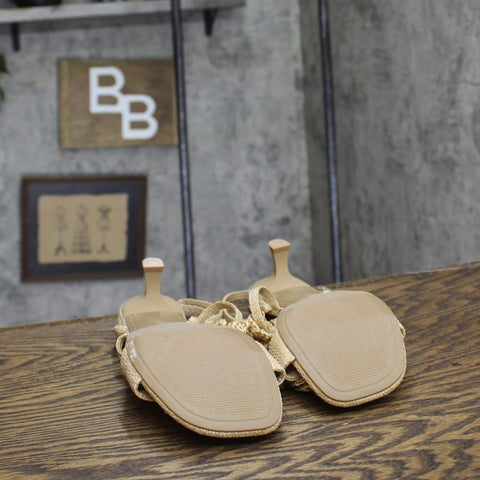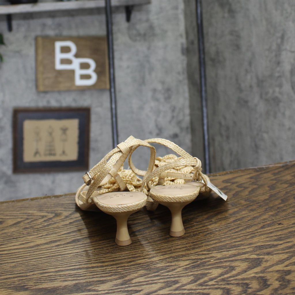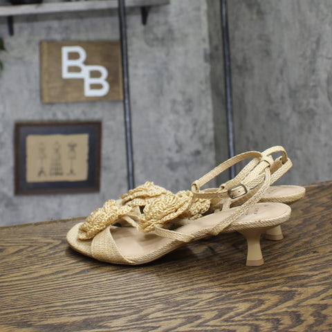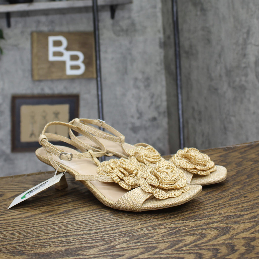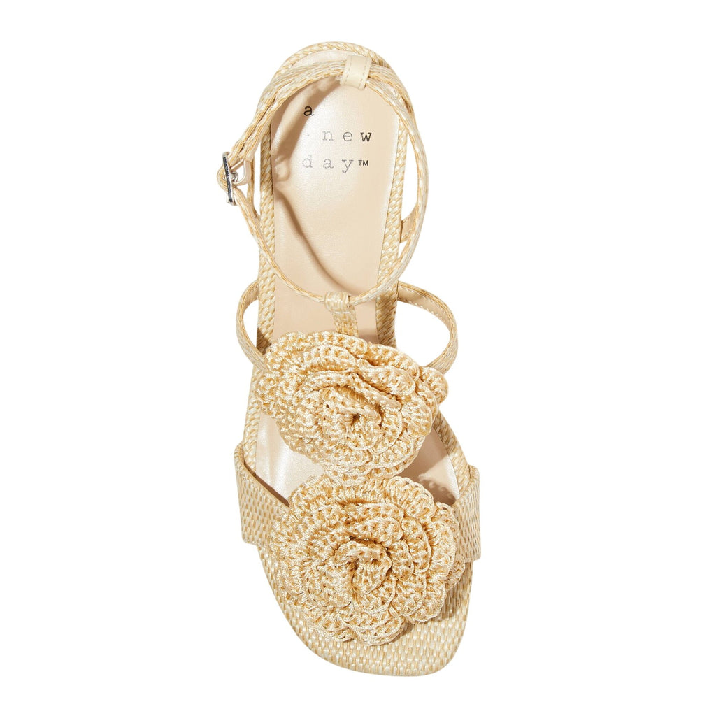 Step into effortless elegance from morning to night with these Esme Floral Crochet Kitten Heels from A New Day. These D-toe heels are designed with crocheted floral detailing on the straps for a standout look. They're set on two-inch Louis heels and boast an ankle buckle closure, providing a stylish lift to your height and a stay-put fit.A New Day: Style that goes wherever you do. Floral crochet kitten heels in tan 2in Louis heel Adjustable buckle strap closure Open D-toe Medium width Sizing: Womens Care and Cleaning: Clean With Mild Detergent Footwear Insole Material: 100% Polyurethane Features: Buckle Construction: Adjustable Buckle Strap Footwear Lining Material: 100% Polyurethane Toe Style: D Toe Footwear Upper Material: 98% Polyester and 2% Zinc Alloy Heel: Approximately 2.0 Inches Louis Heel Footwear Outsole Material: 57% Polyester and 43% TPR (Thermoplastic Rubber) Shoe Width: Medium Footwear toe openness: Open Toe Footwear outsole details: Textured Outsole