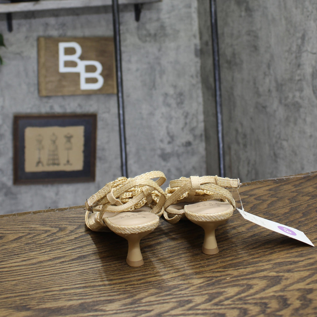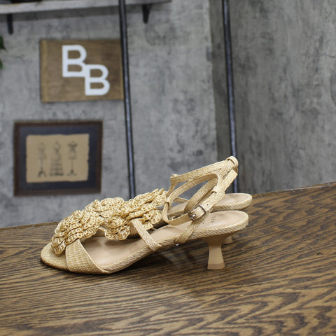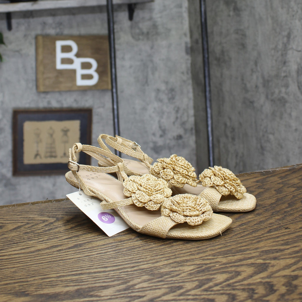 Step into effortless elegance from morning to night with these Esme Floral Crochet Kitten Heels from A New Day. These D-toe heels are designed with crocheted floral detailing on the straps for a standout look. They're set on two-inch Louis heels and boast an ankle buckle closure, providing a stylish lift to your height and a stay-put fit.A New Day: Style that goes wherever you do. Floral crochet kitten heels in tan 2in Louis heel Adjustable buckle strap closure Open D-toe Medium width Sizing: Womens Care and Cleaning: Clean With Mild Detergent Footwear Insole Material: 100% Polyurethane Features: Buckle Construction: Adjustable Buckle Strap Footwear Lining Material: 100% Polyurethane Toe Style: D Toe Footwear Upper Material: 98% Polyester and 2% Zinc Alloy Heel: Approximately 2.0 Inches Louis Heel Footwear Outsole Material: 57% Polyester and 43% TPR (Thermoplastic Rubber) Shoe Width: Medium Footwear toe openness: Open Toe Footwear outsole details: Textured Outsole