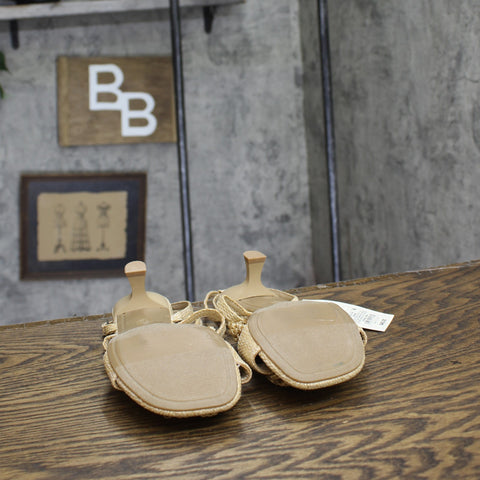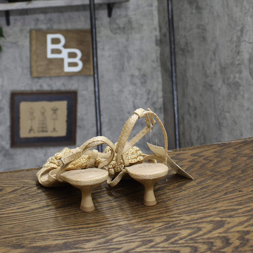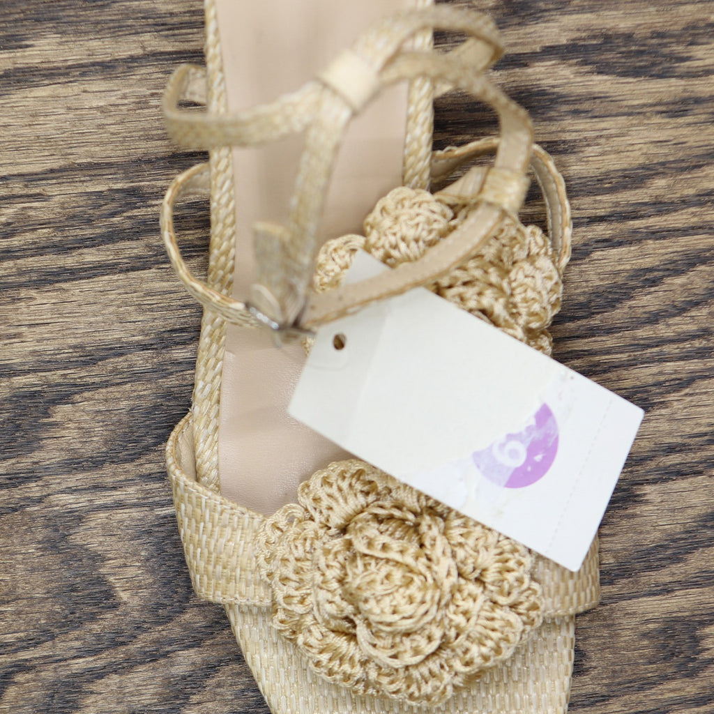 Step into effortless elegance from morning to night with these Esme Floral Crochet Kitten Heels from A New Day. These D-toe heels are designed with crocheted floral detailing on the straps for a standout look. They're set on two-inch Louis heels and boast an ankle buckle closure, providing a stylish lift to your height and a stay-put fit.A New Day: Style that goes wherever you do. Floral crochet kitten heels in tan 2in Louis heel Adjustable buckle strap closure Open D-toe Medium width Sizing: Womens Care and Cleaning: Clean With Mild Detergent Footwear Insole Material: 100% Polyurethane Features: Buckle Construction: Adjustable Buckle Strap Footwear Lining Material: 100% Polyurethane Toe Style: D Toe Footwear Upper Material: 98% Polyester and 2% Zinc Alloy Heel: Approximately 2.0 Inches Louis Heel Footwear Outsole Material: 57% Polyester and 43% TPR (Thermoplastic Rubber) Shoe Width: Medium Footwear toe openness: Open Toe Footwear outsole details: Textured Outsole