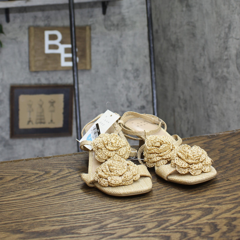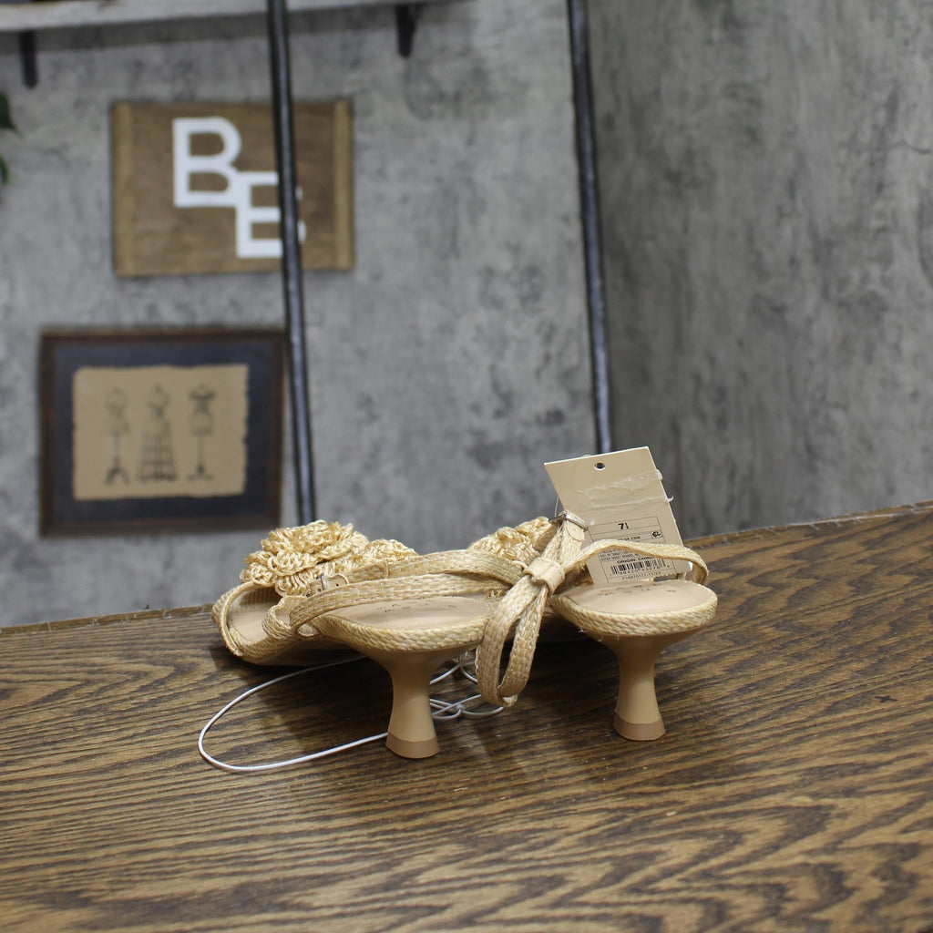 Step into effortless elegance from morning to night with these Esme Floral Crochet Kitten Heels from A New Day. These D-toe heels are designed with crocheted floral detailing on the straps for a standout look. They're set on two-inch Louis heels and boast an ankle buckle closure, providing a stylish lift to your height and a stay-put fit.A New Day: Style that goes wherever you do. Floral crochet kitten heels in tan 2in Louis heel Adjustable buckle strap closure Open D-toe Medium width Sizing: Womens Care and Cleaning: Clean With Mild Detergent Footwear Insole Material: 100% Polyurethane Features: Buckle Construction: Adjustable Buckle Strap Footwear Lining Material: 100% Polyurethane Toe Style: D Toe Footwear Upper Material: 98% Polyester and 2% Zinc Alloy Heel: Approximately 2.0 Inches Louis Heel Footwear Outsole Material: 57% Polyester and 43% TPR (Thermoplastic Rubber) Shoe Width: Medium Footwear toe openness: Open Toe Footwear outsole details: Textured Outsole