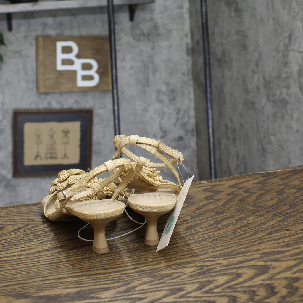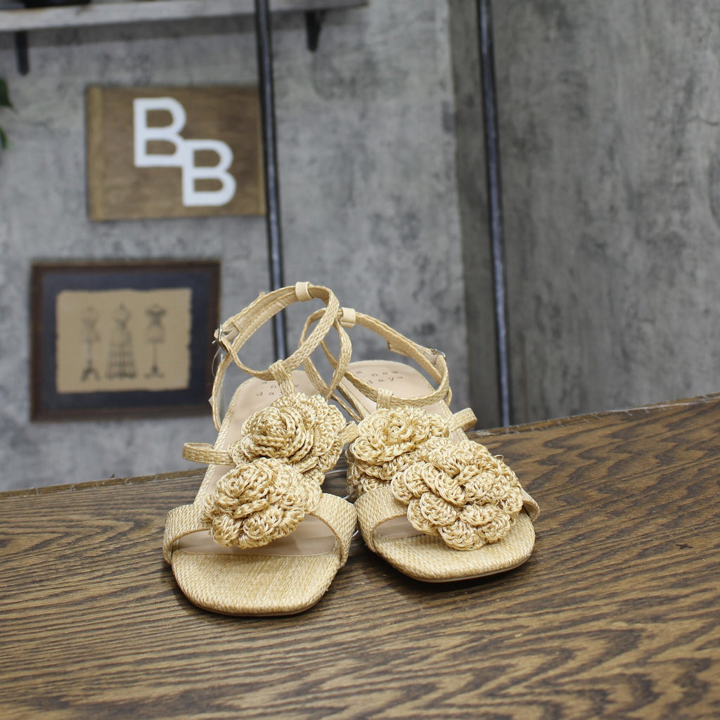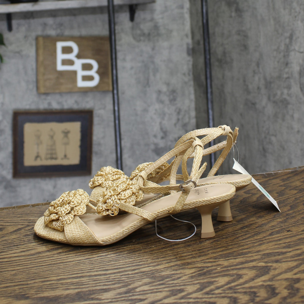 Step into effortless elegance from morning to night with these Esme Floral Crochet Kitten Heels from A New Day. These D-toe heels are designed with crocheted floral detailing on the straps for a standout look. They're set on two-inch Louis heels and boast an ankle buckle closure, providing a stylish lift to your height and a stay-put fit.A New Day: Style that goes wherever you do. Floral crochet kitten heels in tan 2in Louis heel Adjustable buckle strap closure Open D-toe Medium width Sizing: Womens Care and Cleaning: Clean With Mild Detergent Footwear Insole Material: 100% Polyurethane Features: Buckle Construction: Adjustable Buckle Strap Footwear Lining Material: 100% Polyurethane Toe Style: D Toe Footwear Upper Material: 98% Polyester and 2% Zinc Alloy Heel: Approximately 2.0 Inches Louis Heel Footwear Outsole Material: 57% Polyester and 43% TPR (Thermoplastic Rubber) Shoe Width: Medium Footwear toe openness: Open Toe Footwear outsole details: Textured Outsole