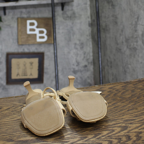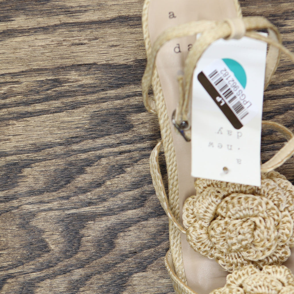 Step into effortless elegance from morning to night with these Esme Floral Crochet Kitten Heels from A New Day. These D-toe heels are designed with crocheted floral detailing on the straps for a standout look. They're set on two-inch Louis heels and boast an ankle buckle closure, providing a stylish lift to your height and a stay-put fit.A New Day: Style that goes wherever you do. Floral crochet kitten heels in tan 2in Louis heel Adjustable buckle strap closure Open D-toe Medium width Sizing: Womens Care and Cleaning: Clean With Mild Detergent Footwear Insole Material: 100% Polyurethane Features: Buckle Construction: Adjustable Buckle Strap Footwear Lining Material: 100% Polyurethane Toe Style: D Toe Footwear Upper Material: 98% Polyester and 2% Zinc Alloy Heel: Approximately 2.0 Inches Louis Heel Footwear Outsole Material: 57% Polyester and 43% TPR (Thermoplastic Rubber) Shoe Width: Medium Footwear toe openness: Open Toe Footwear outsole details: Textured Outsole