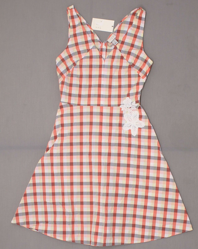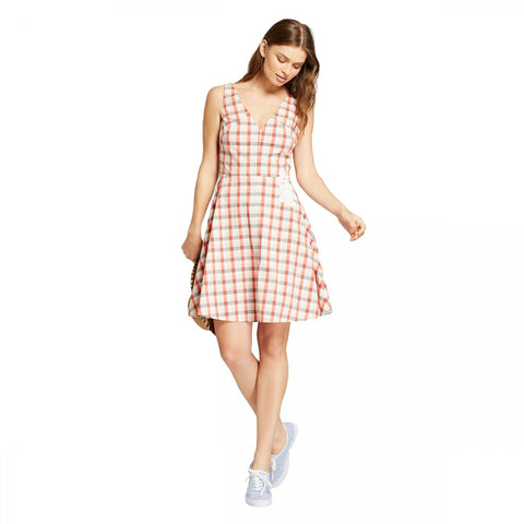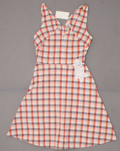 Feel like a princess in this sleeveless fit and flair dress in a plaid pattern. Applique adorned for added interest.