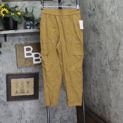 Spruce up your bottoms collection with these High-Rise Ankle Cargo Pants from A New Day. Designed in a tapered-leg silhouette, the high-rise cargo pants are made from lightweight fabric to keep you in absolute comfort. A full-elastic waistband provides you a secure fit, while two side and patch pockets allow you to carry small everyday essentials. In a solid hue, they are easy to coordinate with a variety of tees, tanks or sweatshirts for versatile wear.A New Day: Style that goes wherever you do. High-rise ankle cargo pants Tapered legs Lightweight twill fabric Full-elastic waistband Side and cargo pockets Recycled polyester Sizing: Womens Material: 92% Rayon, 8% Recycled Polyester Inseam Length: 28 Inches Rise: High Rise Closure Style: Full Waistband Elastic Fit: Tapered Leg with a Slim Fit Garment Length: Ankle Fabric Name: Twill Garment Details: Full Waistband Elastic, Patch Pocket, Cargo Pocket Fabric Weight Type: Lightweight Fabric Stretch: No Stretch Care and Cleaning: Machine Wash, Tumble Dry